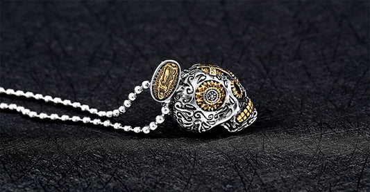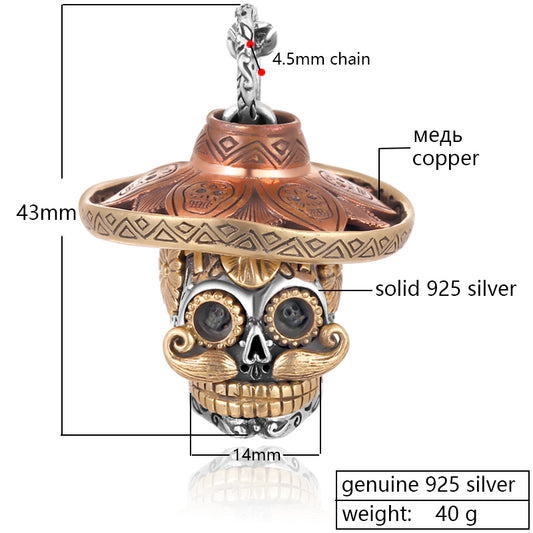 Most Luxury 925 Sterling Silver Skull Pendant Necklace Heavy Gold Copper Cross Jesus Gothic Skeleton Pendants Jewelry