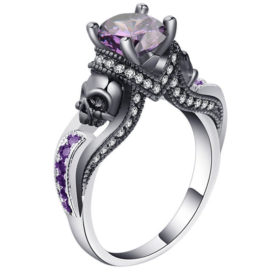 Punk Skeleton Ring set For Women Purple Crystal Skull Rings Black silver Color Fashion Crystal Jewelry