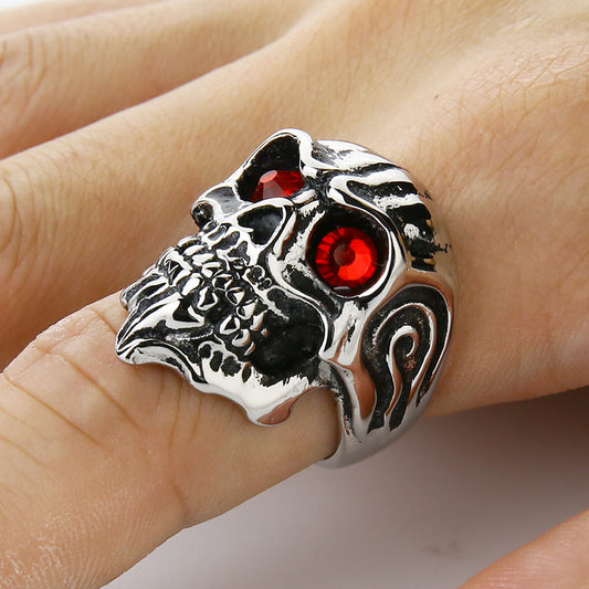 Men's Gold Biker Gothic Skull Ring Red Eye stainless steel old motorcycle restoring ancient ways ring for Men Jewelry
