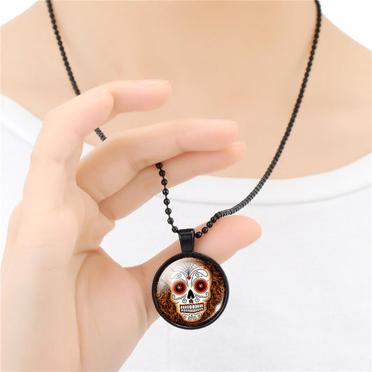 Classic Mexico Sugar Skull Pendants Necklace Vintage Jewelry Glass Cabochon Statement Necklace For Women Gift 1PC
