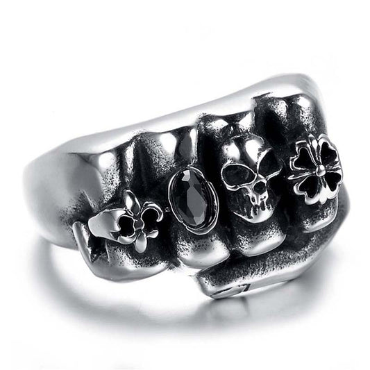 Fashion Retro Style Men Gothic Flower Skull 316L Stainless Steel Biker Ring Anarchy Death Fist Skull Ring Jewelry wholesale