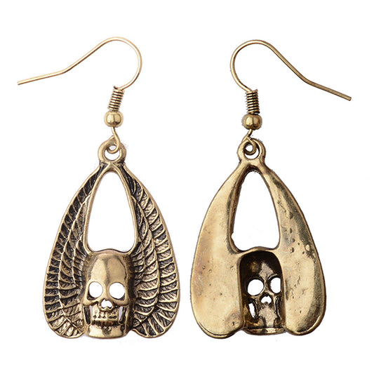 New Arrival Golden Skull Earrings Wing Punk Style Women Awesome Skeleton Dangle Earrings Skull Earrings