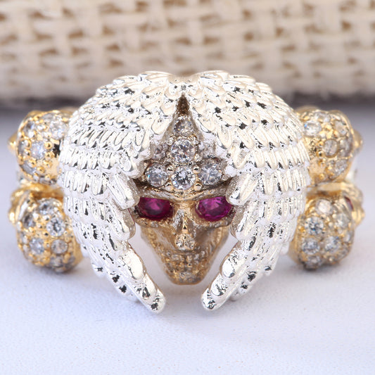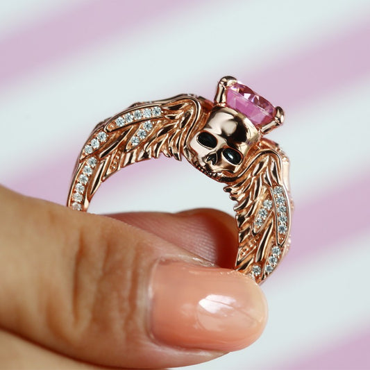 Luxury Rose Gold Ring Engagement Skull Angel Wings Rings For Women Gothic Red Cystal Wedding Band Bridal Accessory Jewelry