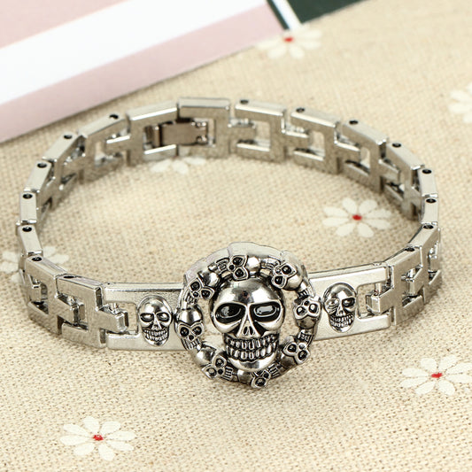 Punk Mens Skull Head Bracelets Cool Rock Skeleton Stainless Steel Charm Cuff Bracelets& Bangles Male Father Day Gifts