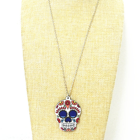 Simple Catrina Acrylic Sugar Skull Necklace Calavera Holloween Day Jewelry for Boy and Girls