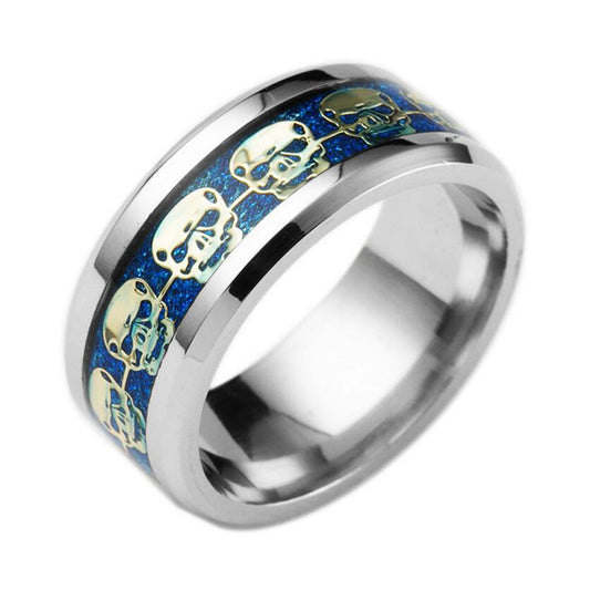 Stainless Steel Skull Ring Gold Filled Blue Black Skeleton Pattern Man Biker