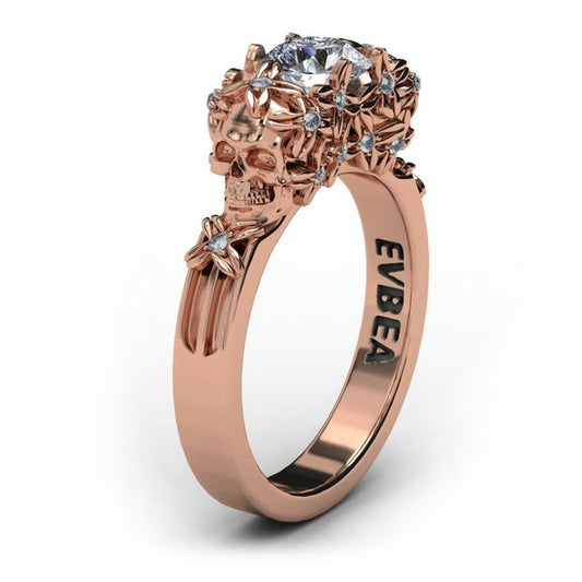 Elegant Gold Skull Zircon Ring Women Halloween Jewelry Gold Filled Engagement Wedding
