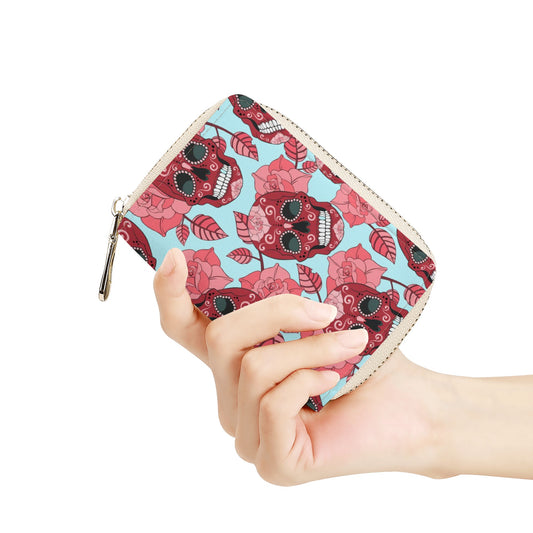 Sugar skull Day of the dead PU Card Holder, sugar skull dia de los muertos coin bag purse