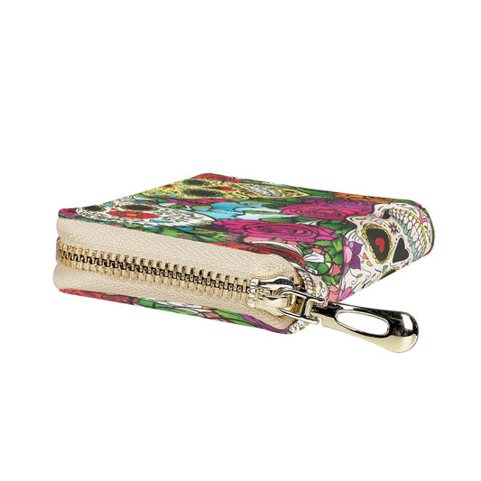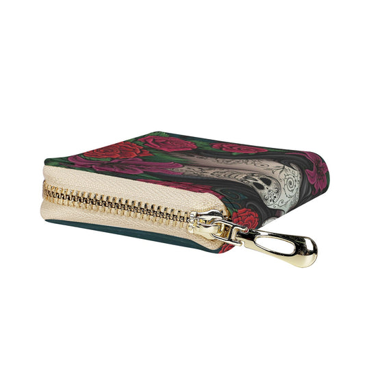 Sugar Skull Wallet for Women Clutch Zipper Credit Card Holder Case Gift Purse