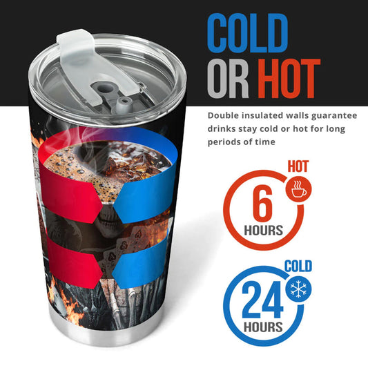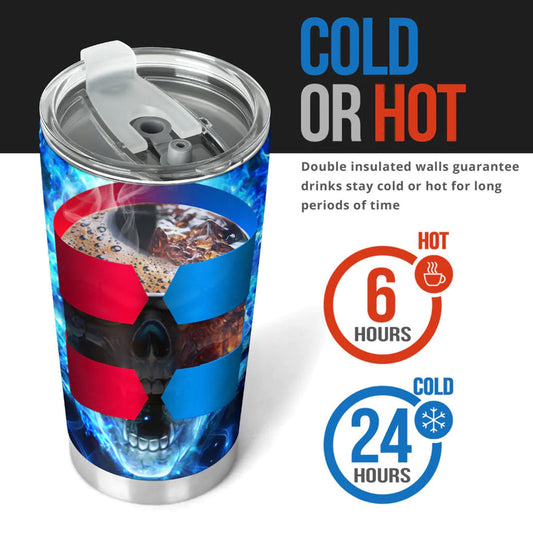 Patriotic Skull Tumbler 20/30oz Stainless Steel Uncle Sam Skeleton Cup with Lid, American Flag Design, Perfect for Patriotic Bikers Veterans