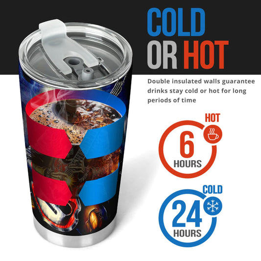 Guitarist skull Mug, punisher skull tumbler, goth tumblr, death skull tumblr, grim reaper coffee mug, gothic skull mug, skeleton travel mug