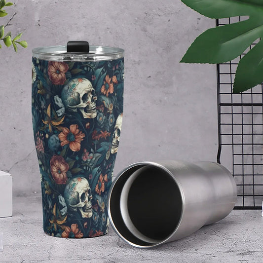 Death skull jumbo Mug, halloween tumbler, horror freezer Mug, skull coffee mug, death skull mug floral skull beer mug rose skull freezer cup
