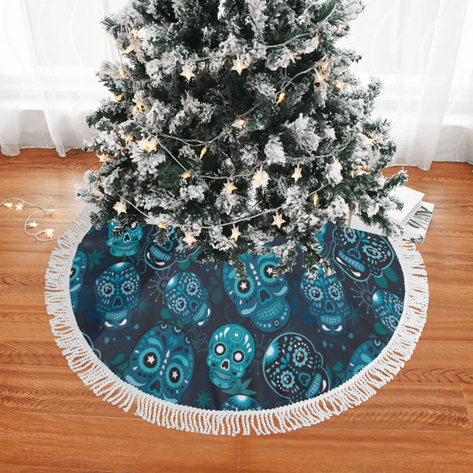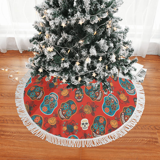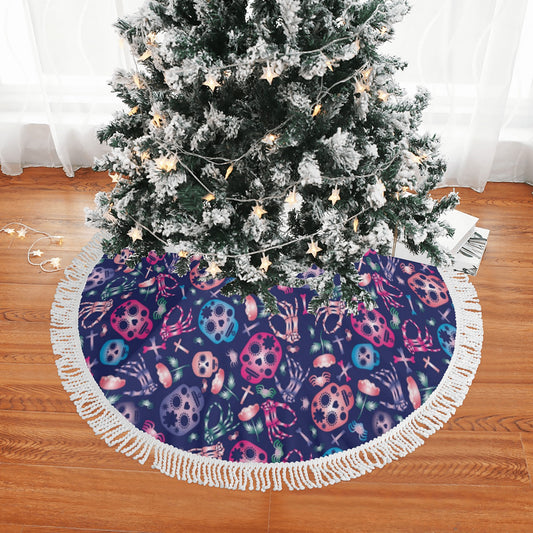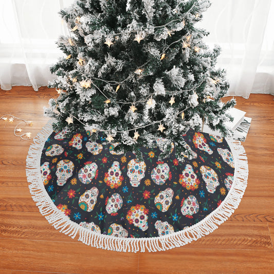 Dia de los muertos Calaveras skull Fringed Christmas Tree Skirts