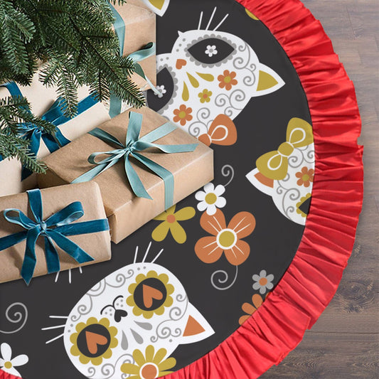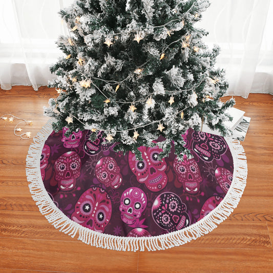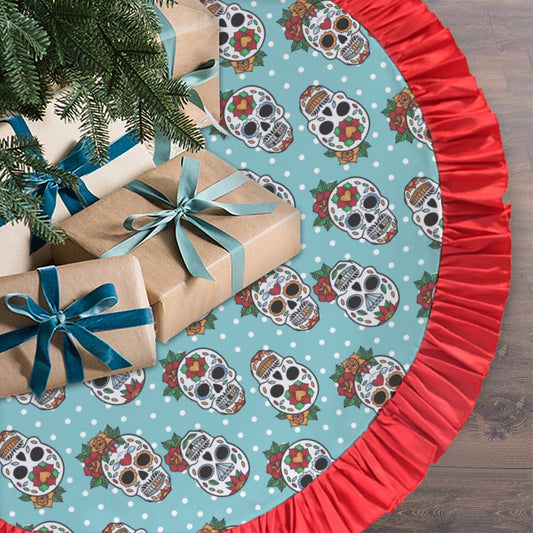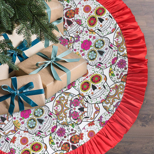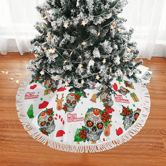Dia de los muertos sugar skull Fringed Christmas Tree Skirts