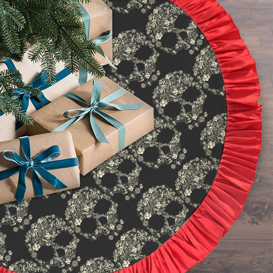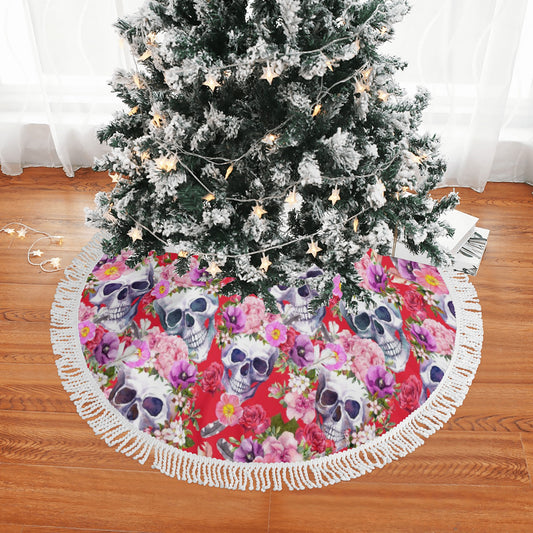 Floral sugar skull pattern Red Christmas Tree Skirt