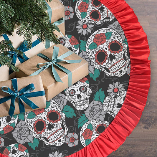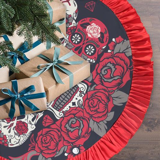 Dia de los muertos sugar skull Red Christmas Tree Skirt