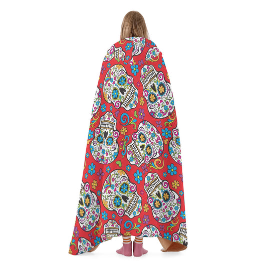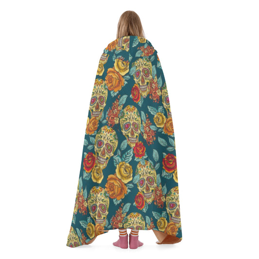 Cinco de mayo skull hooded blanket, sugar skull hooded fleece blanket, mexico hooded blanket adult, sugar skull girl throw hooded, sugar sku