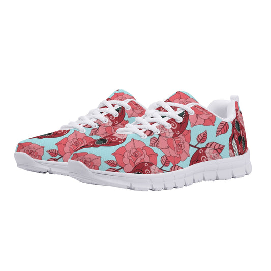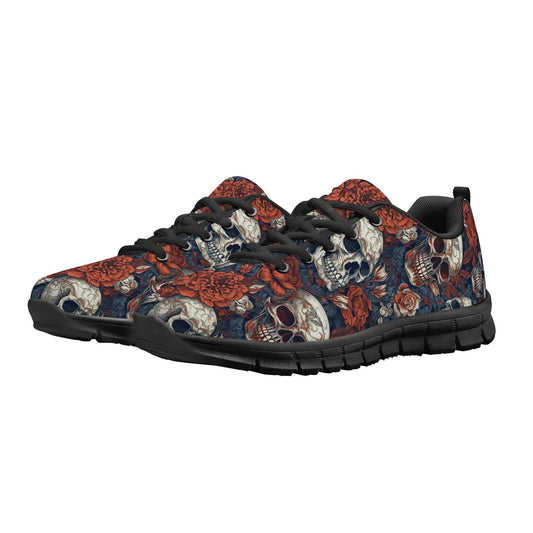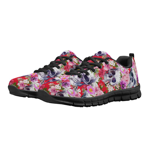 Floral sugar skull running sneakers, dia de los muertos skull running shoes, candy skull breathable sneakers, dia de los muertos skull shoes