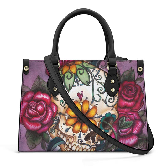 Horror travel bag, spooky death bag with shoulder strap, evil face women's purse, rose skull handbag with strap, rose skull shoulder bag, sk
