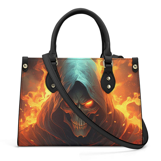 Evil face women's handbag, grim reaper messenger bag, spooky death cosmetic bag, skeleton purse, halloween travel bag, flaming skull women's