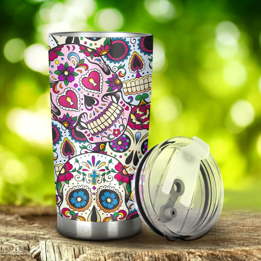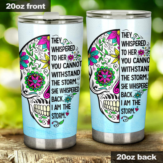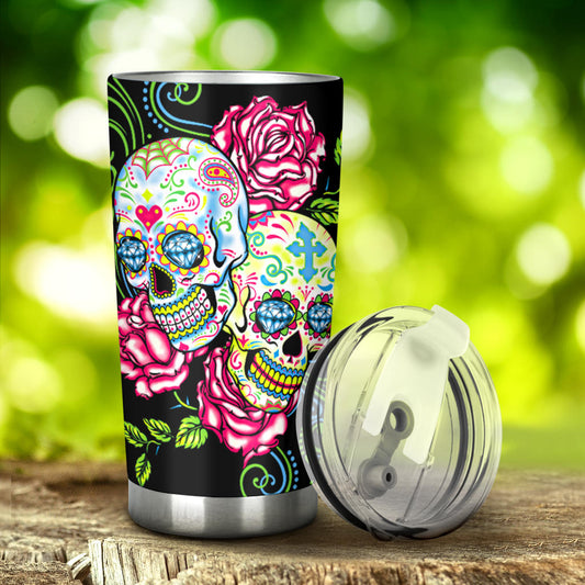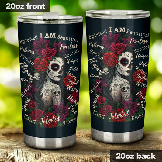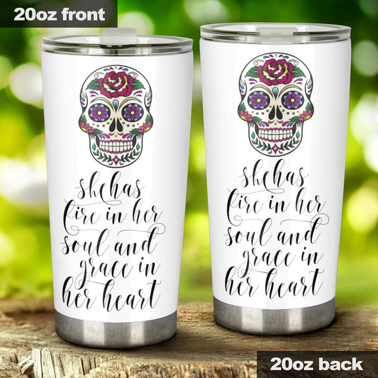 Sugar skull tumbler - She has fire in her soul and grace in her heart