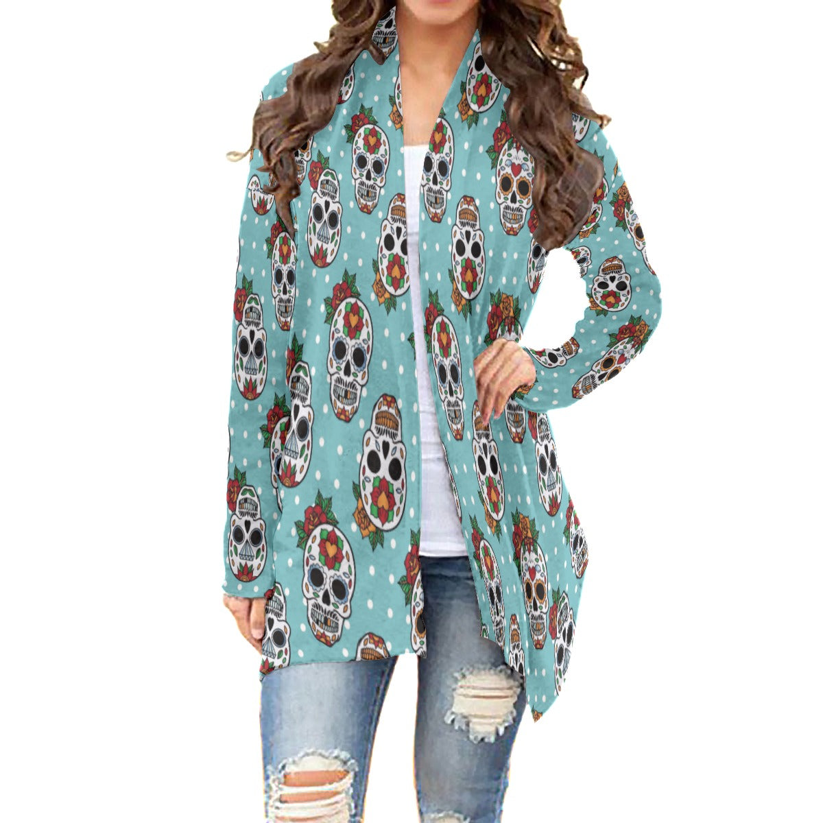 Calaveras sugar skull Women's Cardigan With Long Sleeve