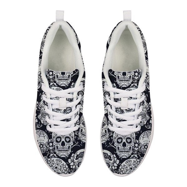 Classic Sugar Skulls Printed Flat Sneakers Gothic Casual Mesh Lace Sprot Women Shoes