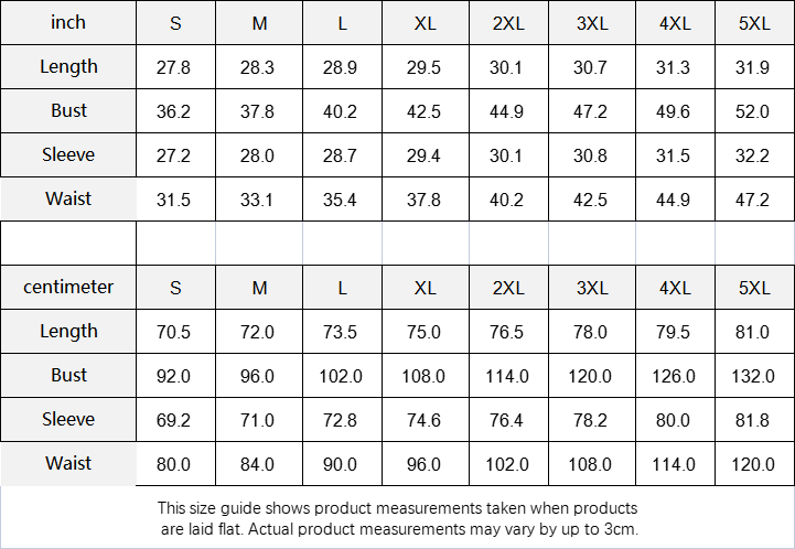 This size guide shows product measurements taken when products are laid flat. Actual product measurements may vary by up to 3cm.