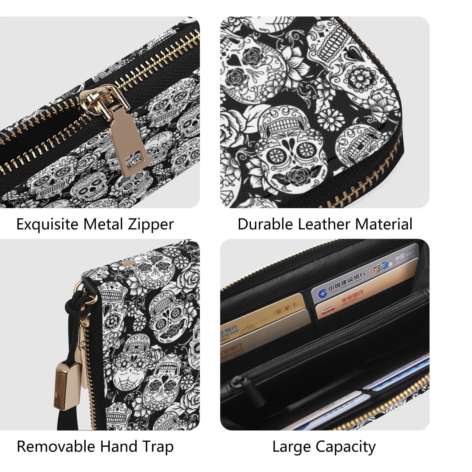 Cinco de mayo skull purse, calaveras skull cosmetic wallet, day of the dead wallet, dia de los muertos skull travel bag, sugar skull cosmetic bag, mexico wallet, floral sugar skull handbag, candy skull cosmetic bag, floral sugar skull travel bag Women's Tote Bag: =================== Size: Length (44cm/17.3in) x Width (15cm/5.9in) x Height (28cm/11in) The leather fabric is noble and atmospheric, and the large-capacity handbag can be carried diagonally on one shoulder or directly by hand, and can be carried in various ways. Made of PU Due to manual measurement, the measurement error is about within 0.4" The custom area is single-side printing. This product is made on-demand. No minimums. There are multiple shipping methods available, and the fees may vary depending on the location and the shipping method. Cosmetic Bag With Black Handle: =================== Size: Length (21.5cm/8.5in) x Width (6.5cm/2.6in) x Height (14.5cm/5.7in) PU waterproof durable fabric protects your gear from spills and is easy to wipe down. Zip top closure. Unique trapezoidal shape, portable and detachable PU leather hand strap. Great for everyday use or travel. Made of PU Zipper closure, black handle Due to manual measurement, the measurement error is about within 0.4". The custom area is all-inclusive printing. This product is made on-demand. No minimums. There are multiple shipping methods available, and the fees may vary depending on the location and the shipping method. Long Wallet With Black Hand Strap: =================== Size: Length (20cm/79in) x Width (2.5cm/1in) x Height (11cm/4.4in) The hand strap makes this wallet easy to carry, so you can keep it in your bag or take it directly when you go out. Large internal capacity, PU surface, overall simple and elegant、 Made of Pu Black hand strap, large capacity. Due to manual measurement, the measurement error is about within 0.4" The custom area is double-side printing. This product is made on-demand. No minimums. There are multiple shipping methods available, and the fees may vary depending on the location and the shipping method. ======== All products in our store are only manufactured upon receiving an order from the customer. Please carefully review the product description and dimensions in the illustrative images before placing an order. The following cases are not eligible for return/exchange: 1. The product you receive matches the description. 2. The product dimensions (with illustrative images describing the dimensions) you receive match the description. 3. The product has been customized as per your request (e.g., printed with your name/image).