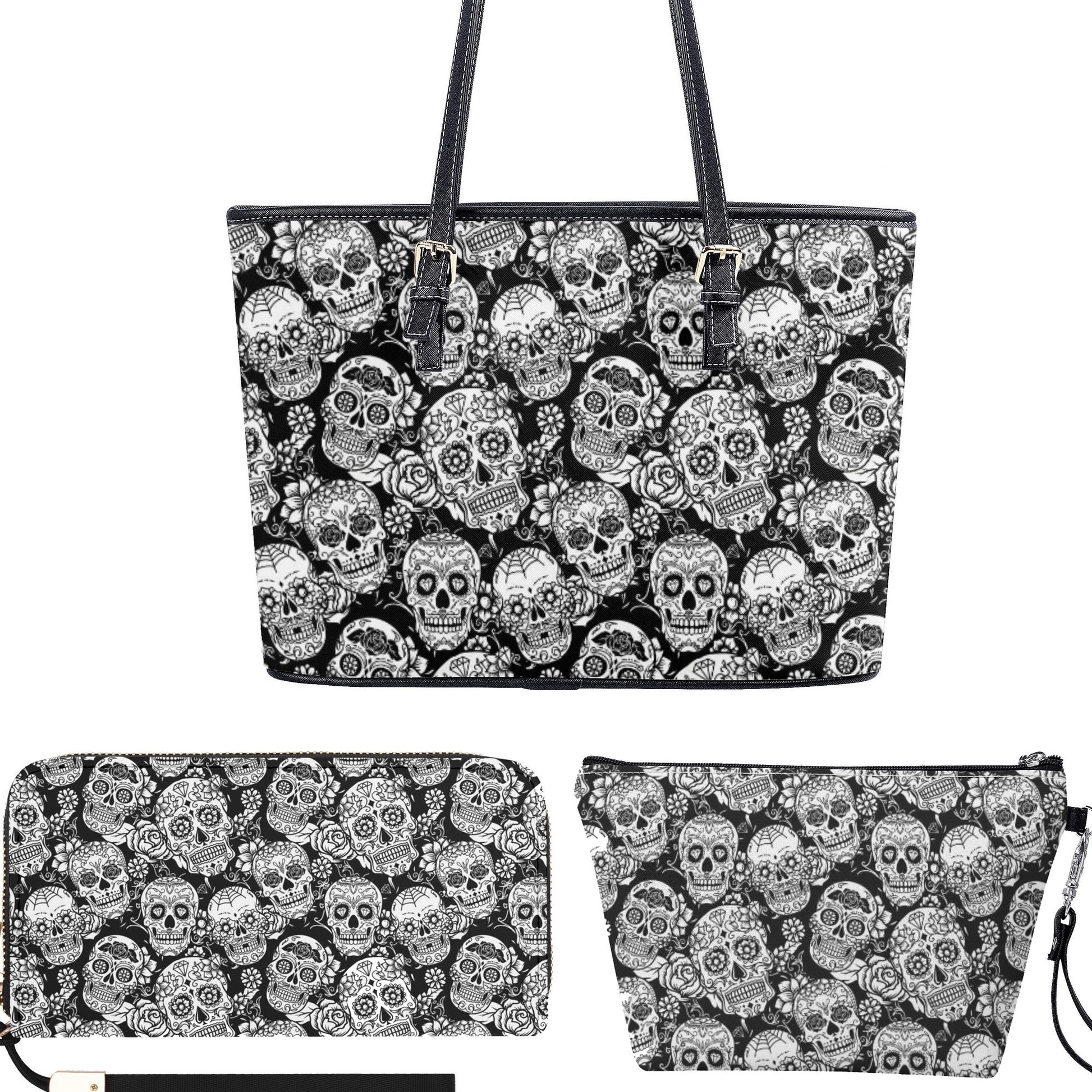 Cinco de mayo skull purse, calaveras skull cosmetic wallet, day of the dead wallet, dia de los muertos skull travel bag, sugar skull cosmetic bag, mexico wallet, floral sugar skull handbag, candy skull cosmetic bag, floral sugar skull travel bag Women's Tote Bag: =================== Size: Length (44cm/17.3in) x Width (15cm/5.9in) x Height (28cm/11in) The leather fabric is noble and atmospheric, and the large-capacity handbag can be carried diagonally on one shoulder or directly by hand, and can be carried in various ways. Made of PU Due to manual measurement, the measurement error is about within 0.4" The custom area is single-side printing. This product is made on-demand. No minimums. There are multiple shipping methods available, and the fees may vary depending on the location and the shipping method. Cosmetic Bag With Black Handle: =================== Size: Length (21.5cm/8.5in) x Width (6.5cm/2.6in) x Height (14.5cm/5.7in) PU waterproof durable fabric protects your gear from spills and is easy to wipe down. Zip top closure. Unique trapezoidal shape, portable and detachable PU leather hand strap. Great for everyday use or travel. Made of PU Zipper closure, black handle Due to manual measurement, the measurement error is about within 0.4". The custom area is all-inclusive printing. This product is made on-demand. No minimums. There are multiple shipping methods available, and the fees may vary depending on the location and the shipping method. Long Wallet With Black Hand Strap: =================== Size: Length (20cm/79in) x Width (2.5cm/1in) x Height (11cm/4.4in) The hand strap makes this wallet easy to carry, so you can keep it in your bag or take it directly when you go out. Large internal capacity, PU surface, overall simple and elegant、 Made of Pu Black hand strap, large capacity. Due to manual measurement, the measurement error is about within 0.4" The custom area is double-side printing. This product is made on-demand. No minimums. There are multiple shipping methods available, and the fees may vary depending on the location and the shipping method. ======== All products in our store are only manufactured upon receiving an order from the customer. Please carefully review the product description and dimensions in the illustrative images before placing an order. The following cases are not eligible for return/exchange: 1. The product you receive matches the description. 2. The product dimensions (with illustrative images describing the dimensions) you receive match the description. 3. The product has been customized as per your request (e.g., printed with your name/image).