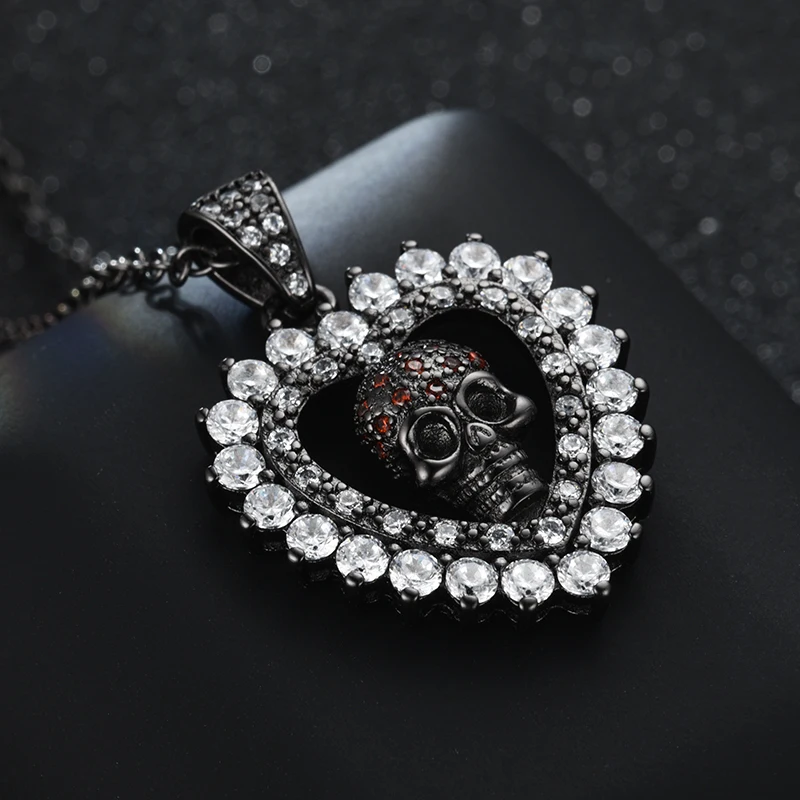 Fashion Love Heart Punk Skull Necklaces Pendants Zircon Crystals Necklaces