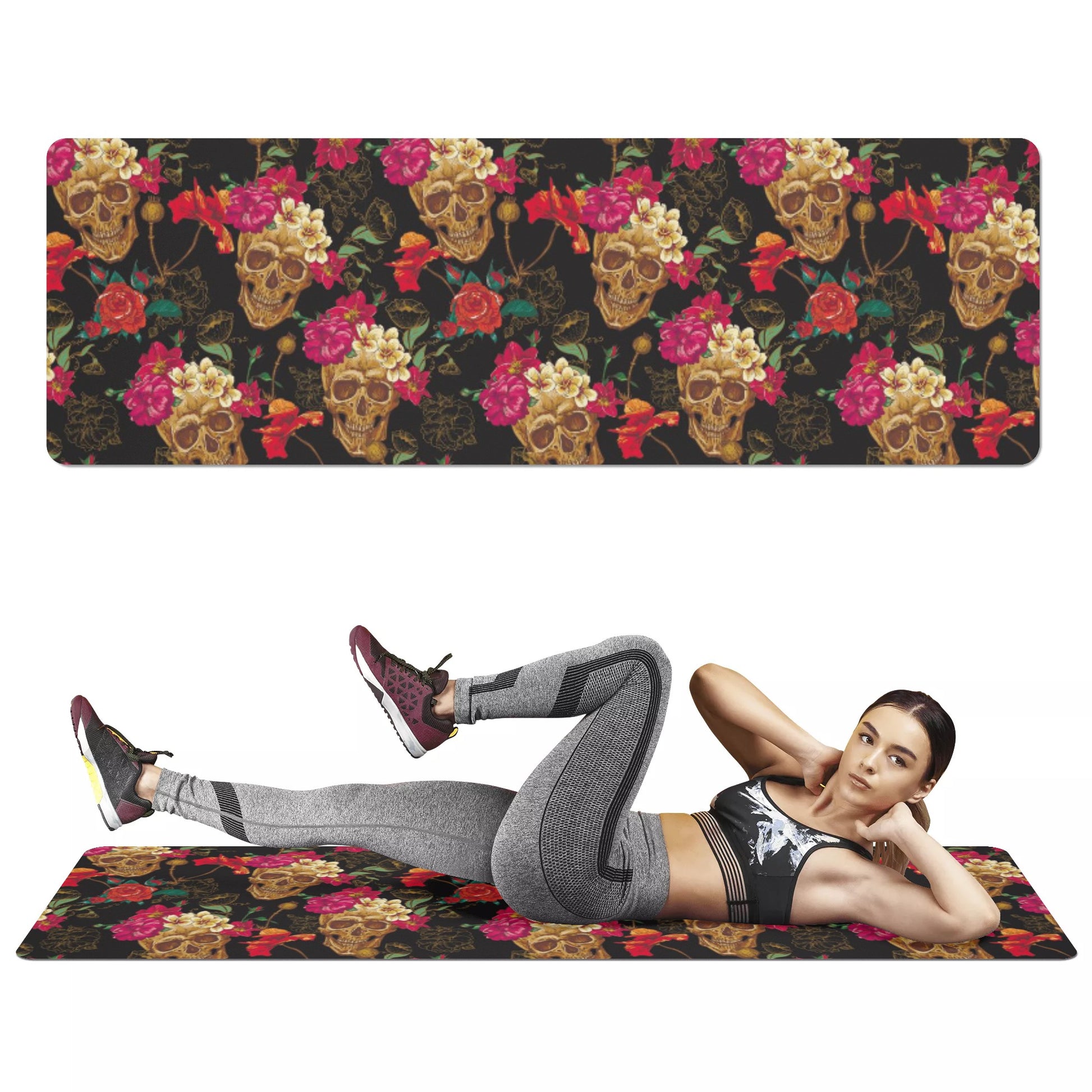 Sugar skull day of the dead Yoga mat, Gothic skull Dia de los muertos yoga mat, skeleton Halloween yoga mat, sugar skull fitness mat, skull workout mat