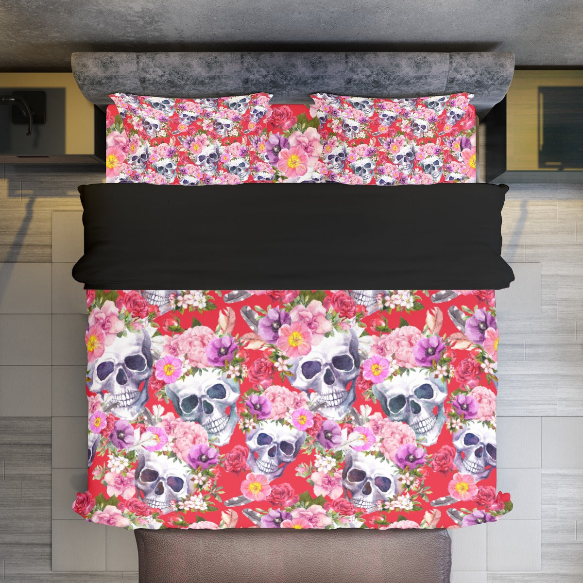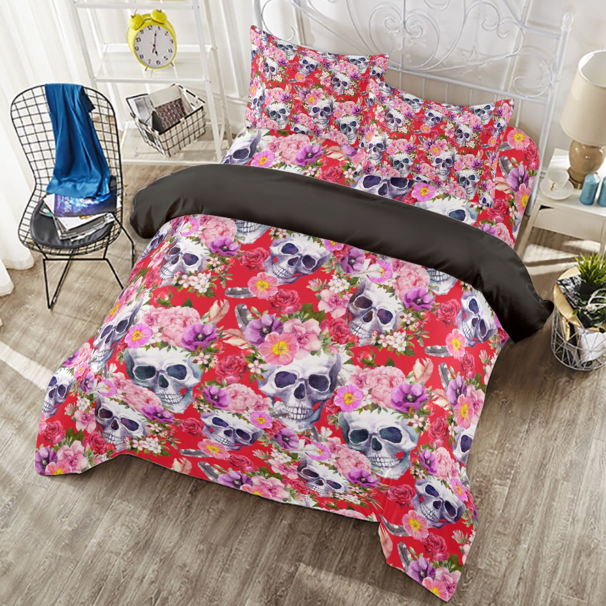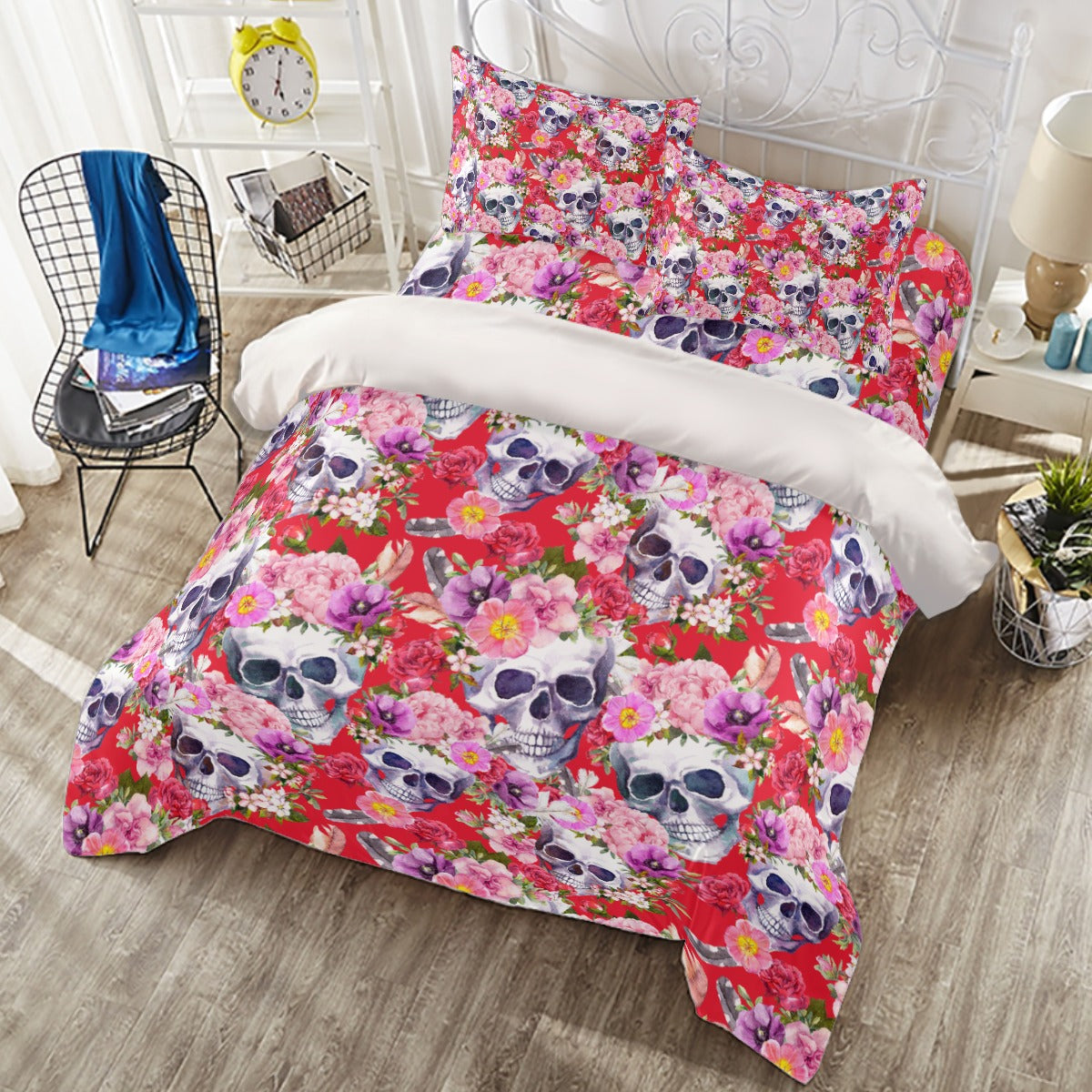 Floral pattern sugar skull Halloween skeleton Four-piece Duvet Cover Set