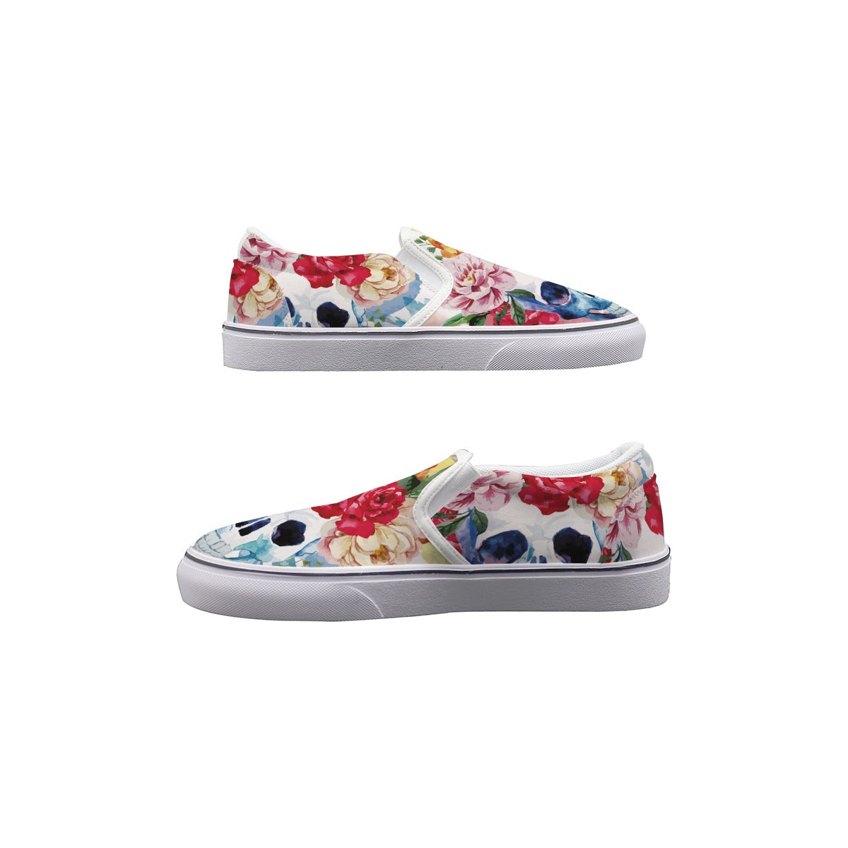 Floral rose skull Halloween skull gothic Women's Slip On Sneakers