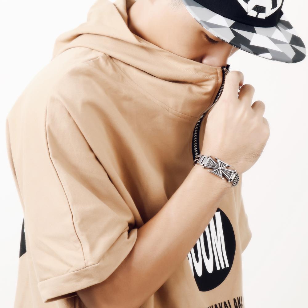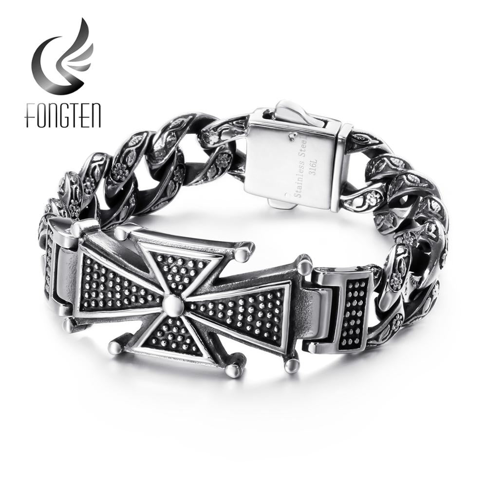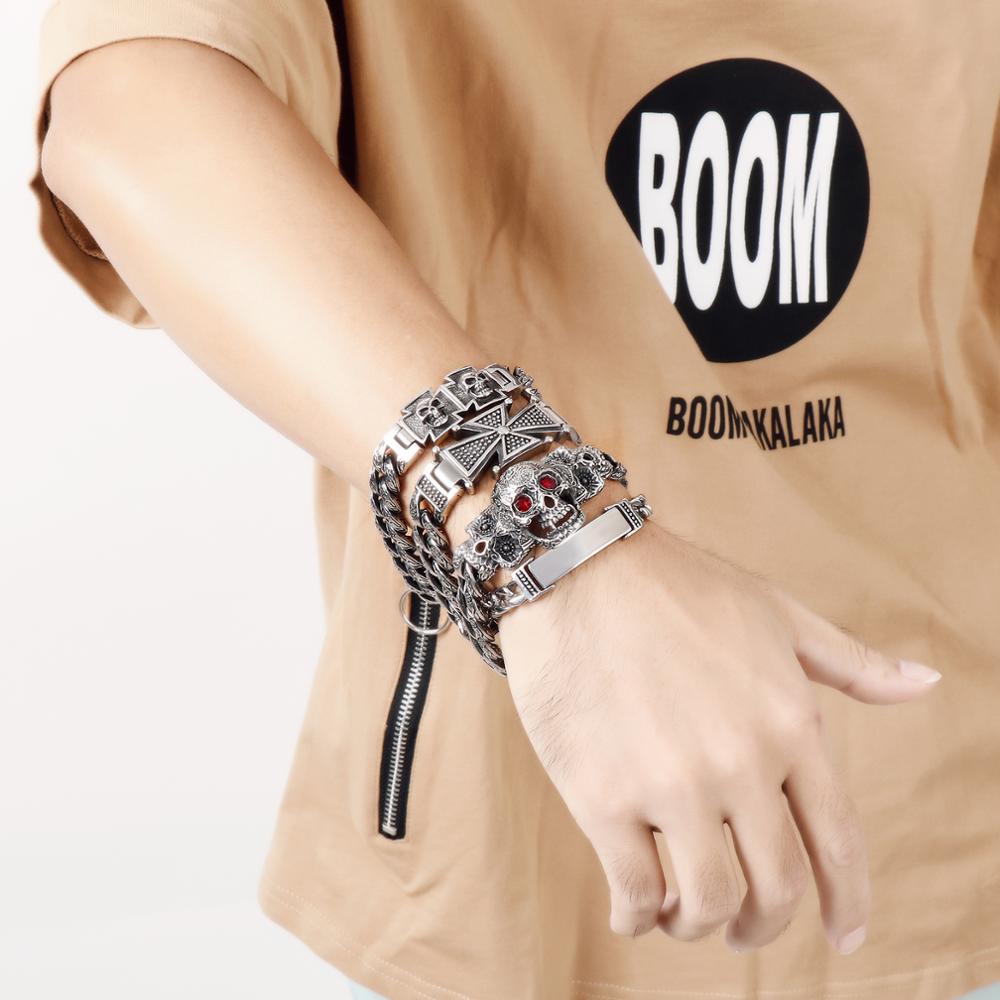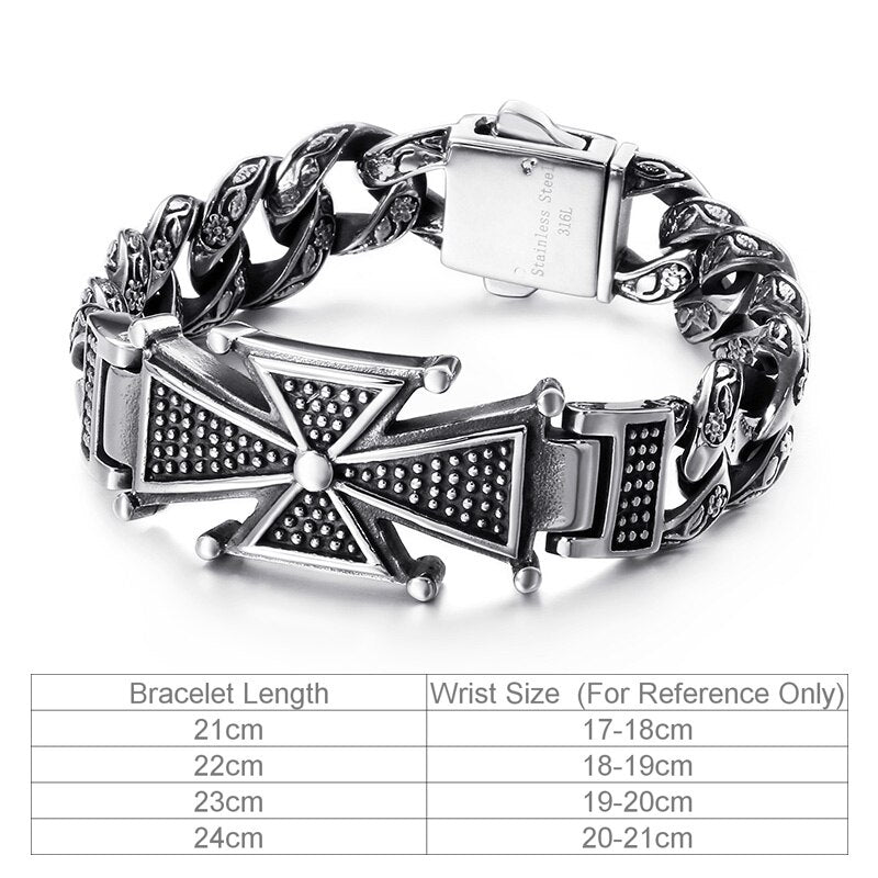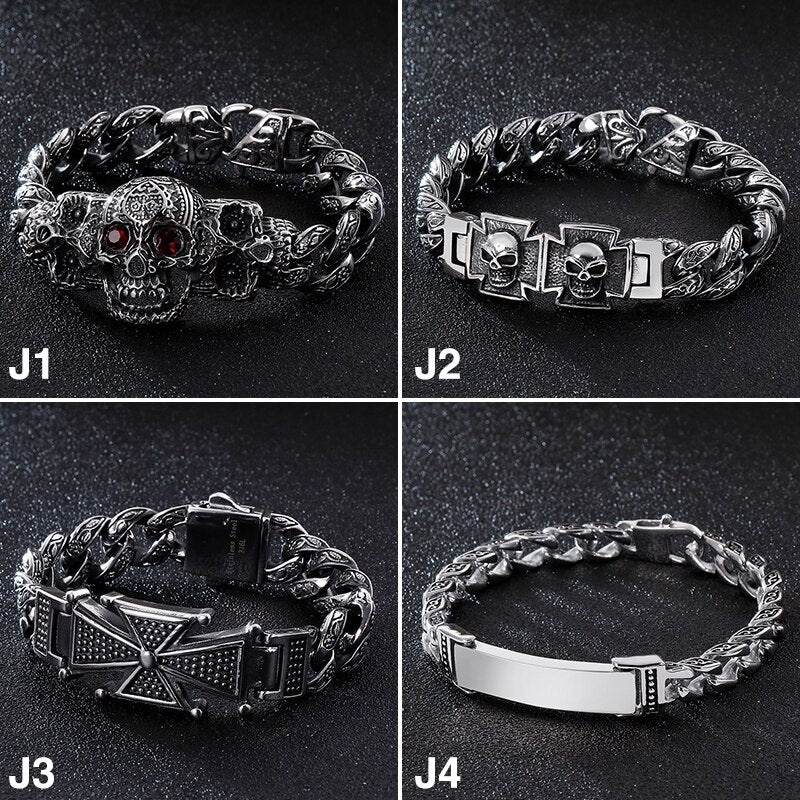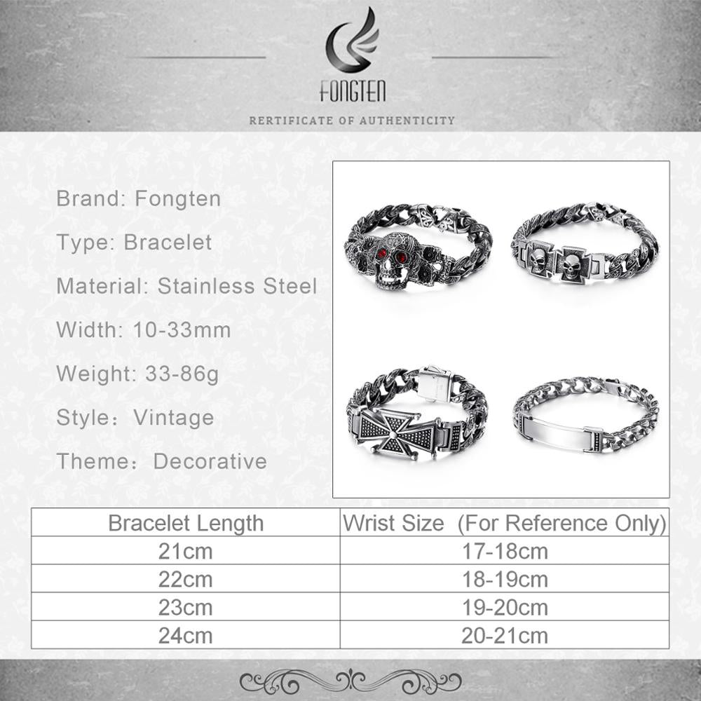 Fongten Skull Cross Curb Men's Bracelet Vintage Black