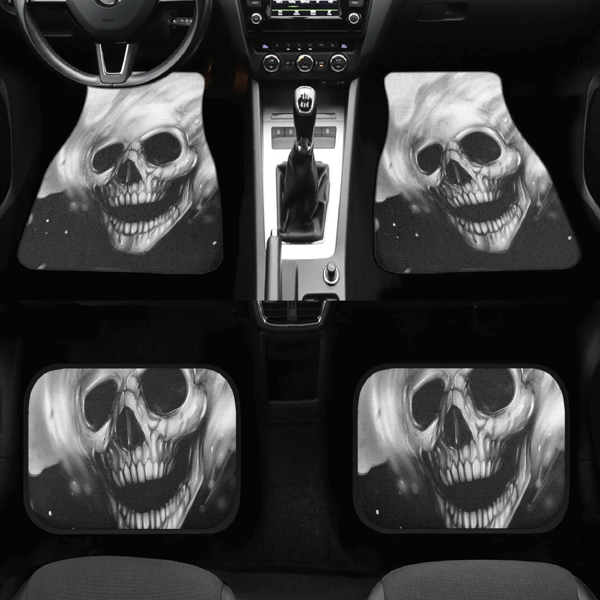 Gothic Skull Seat Cover for car, skull rug for car, Skeleton skull car seat cover mat, Halloween skull evil car seat cover skull mat for car