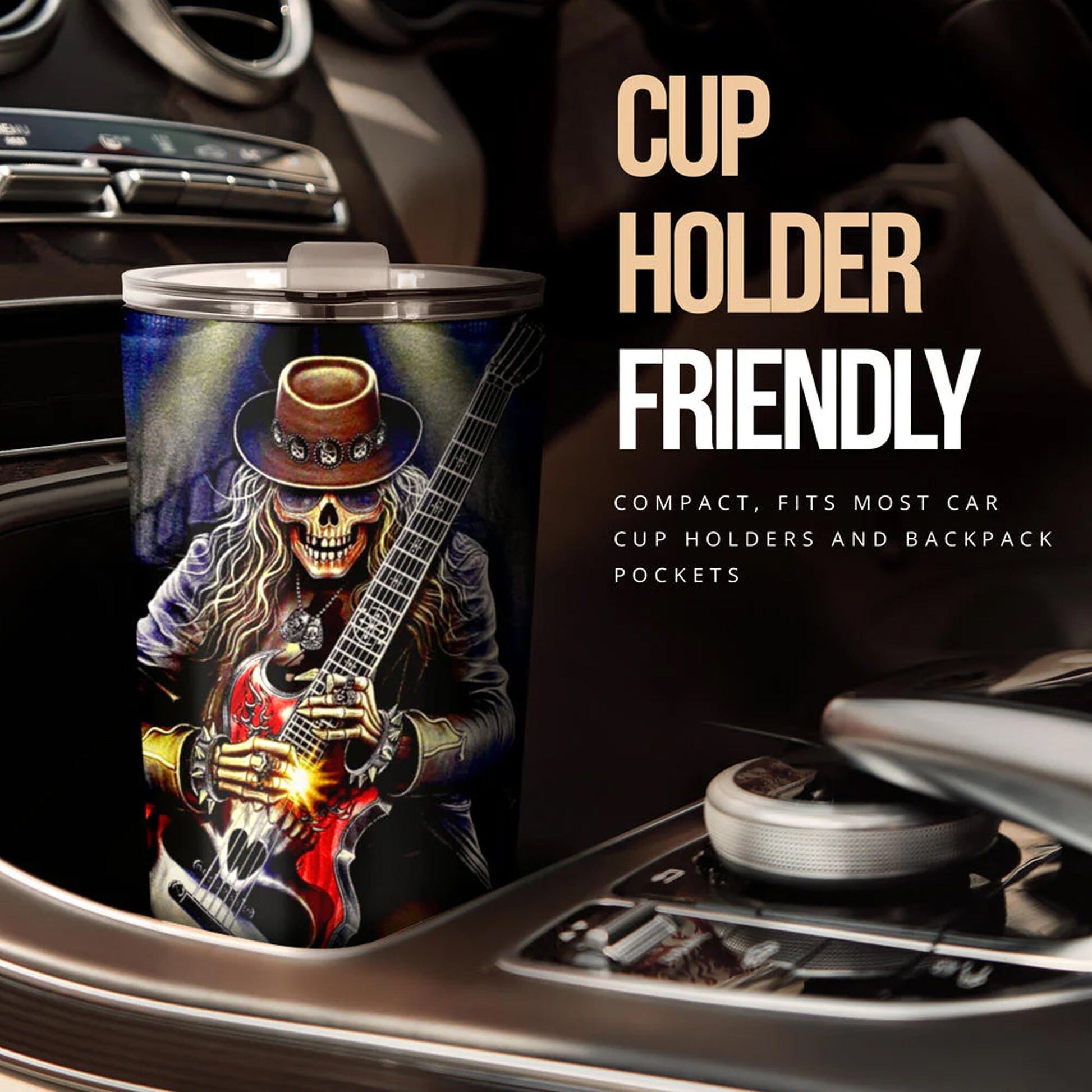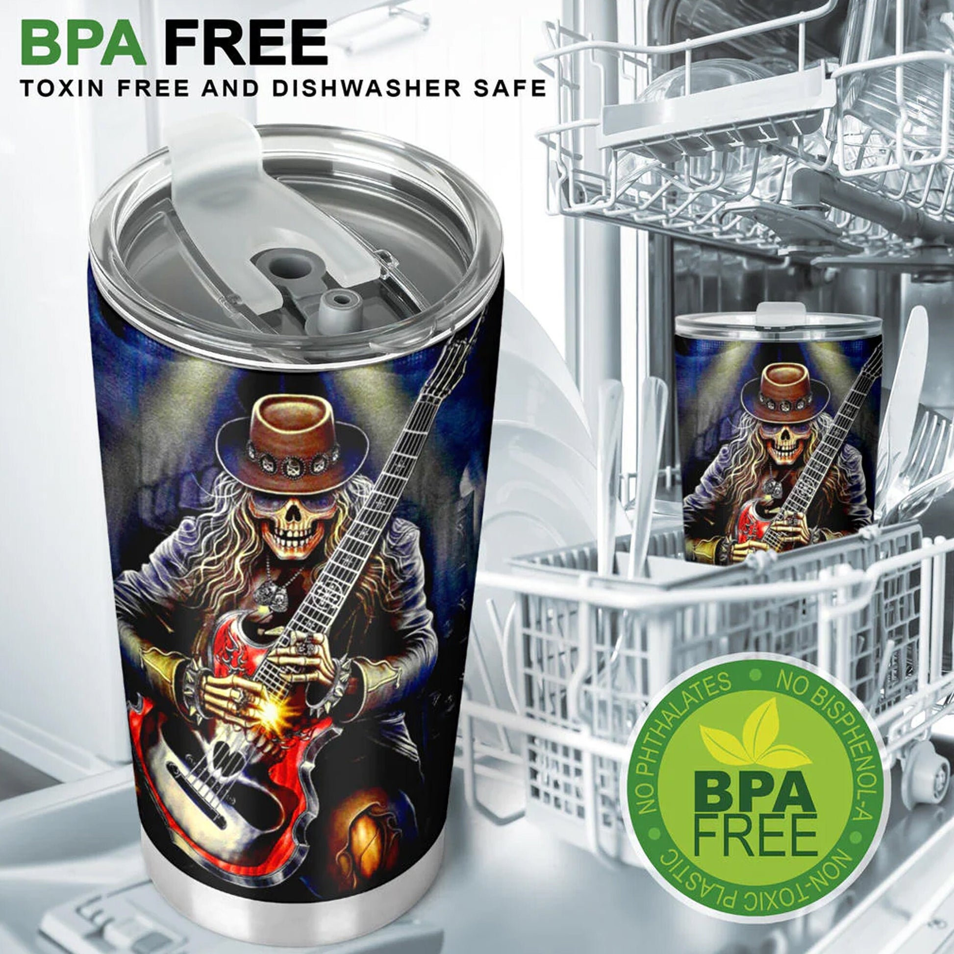 Guitarist skull Mug, punisher skull tumbler, goth tumblr, death skull tumblr, grim reaper coffee mug, gothic skull mug, skeleton travel mug