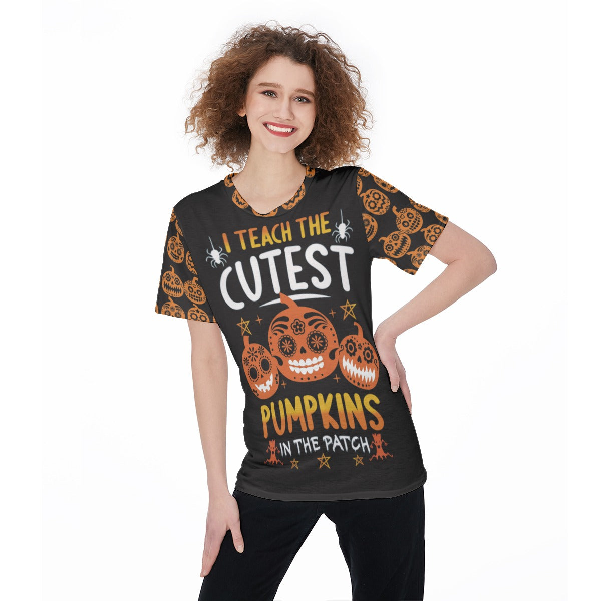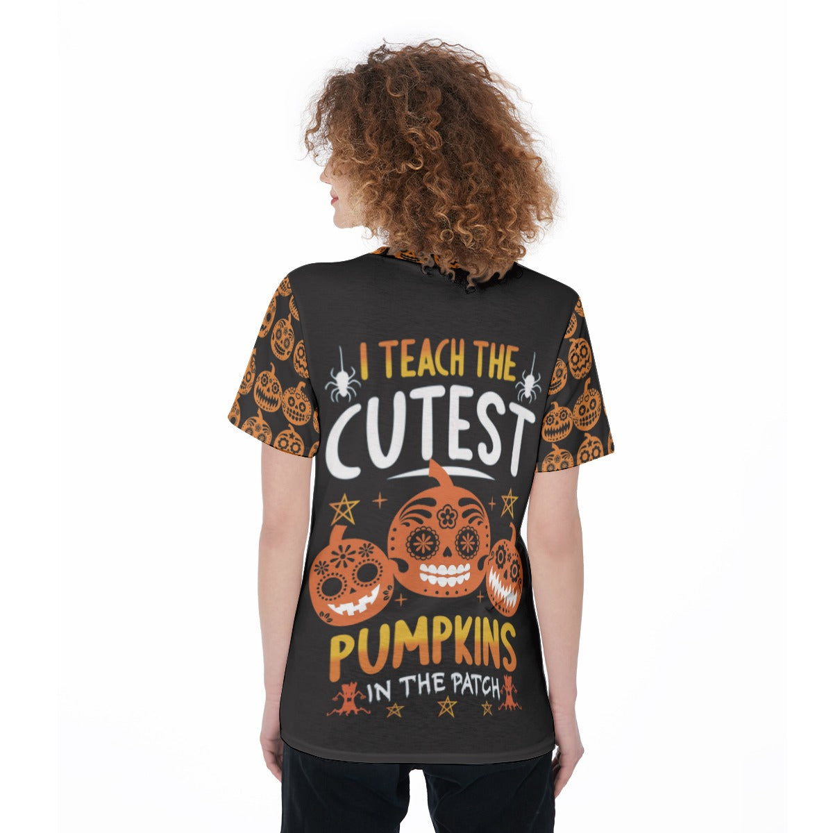 Halloween pumpkin sugar skull Women'S O-Neck T-Shirt