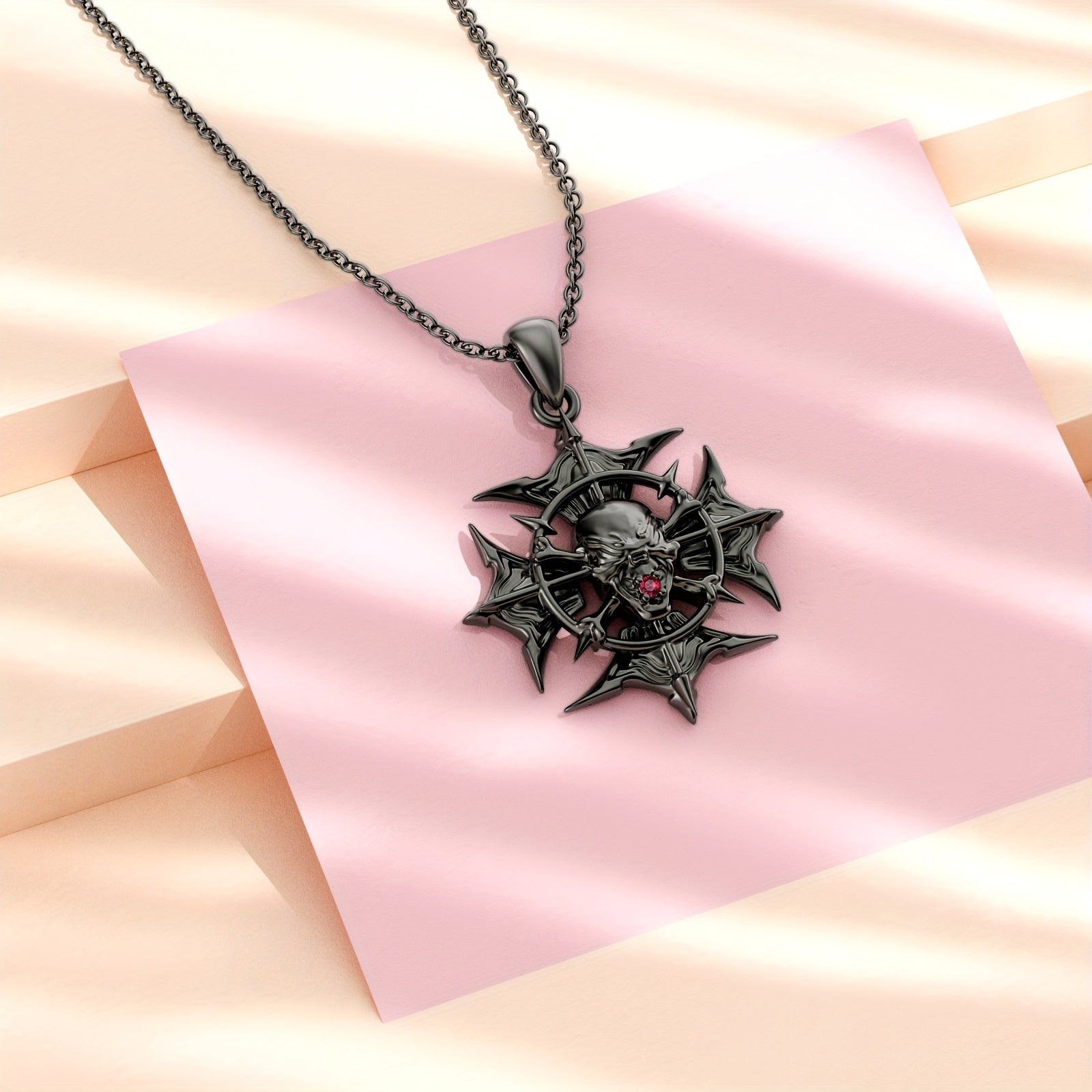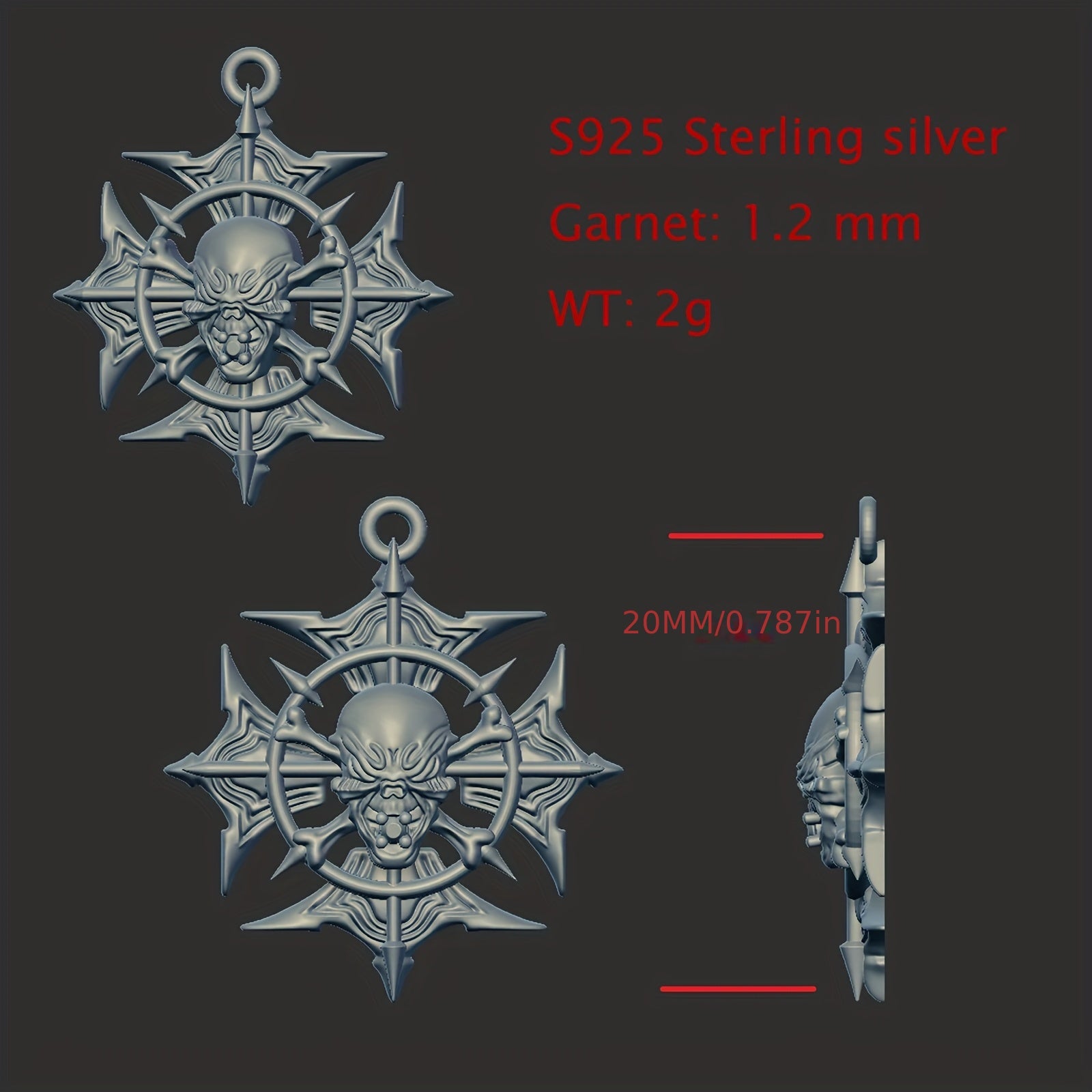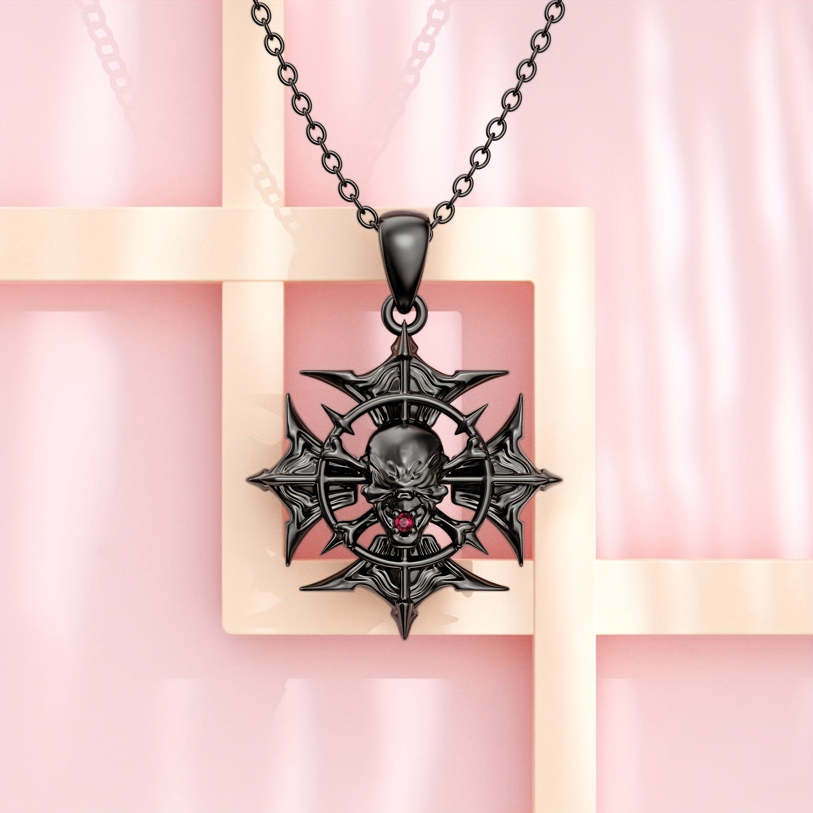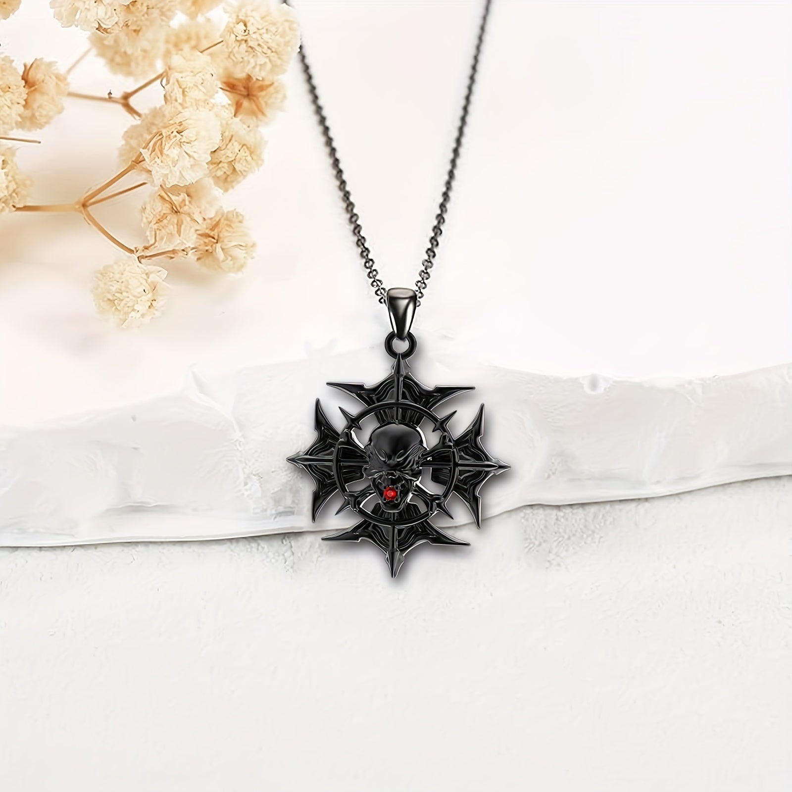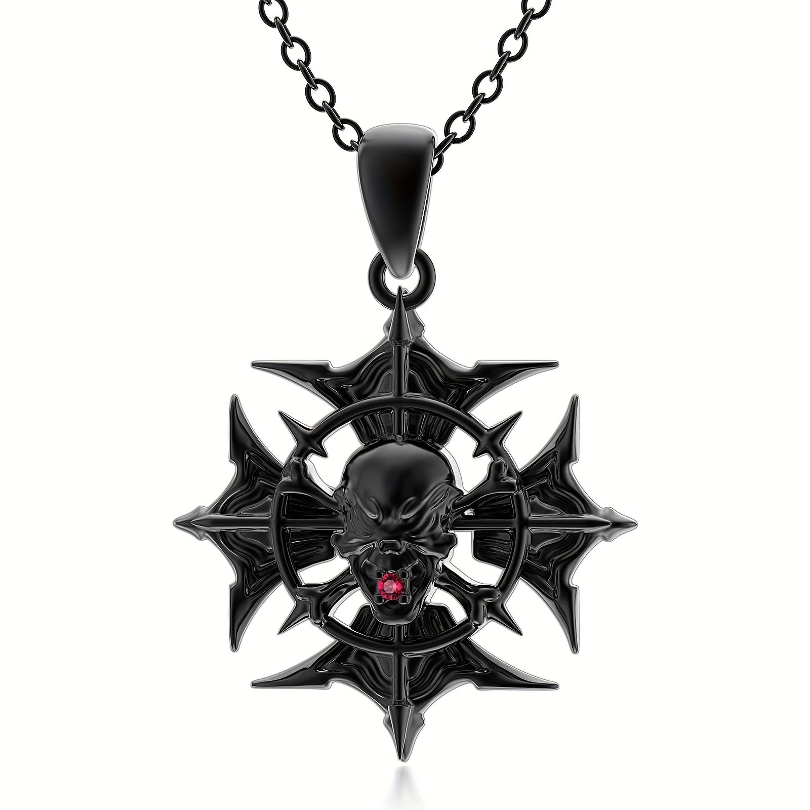 Halloween Skull Necklace For Women Sterling Silver Gothic Skeleton Necklace Black Natural Garnet Halloween Pendant Halloween Skull Jewelry Christmas Gift Mothers Day