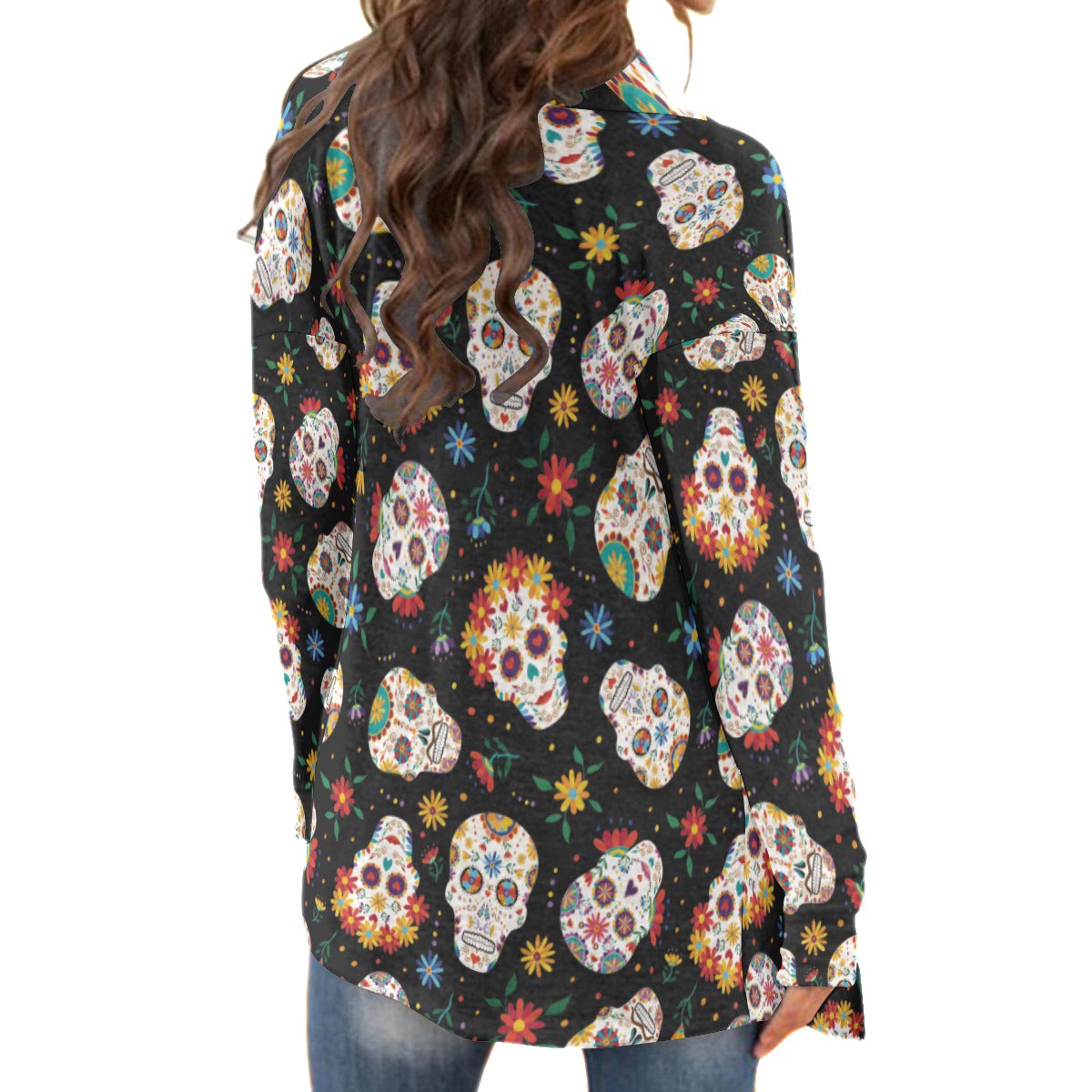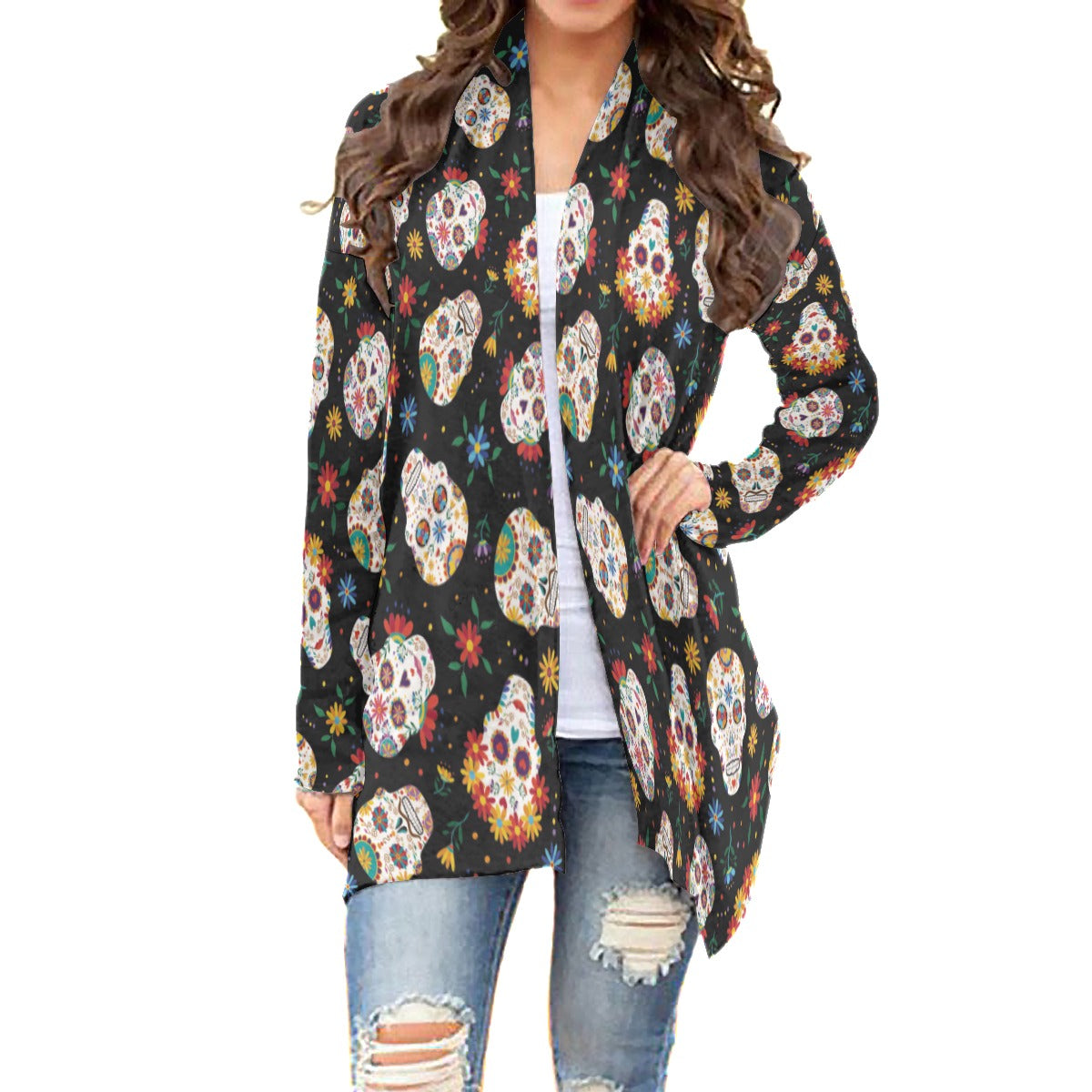 Halloween sugar skull Women's Cardigan With Long Sleeve