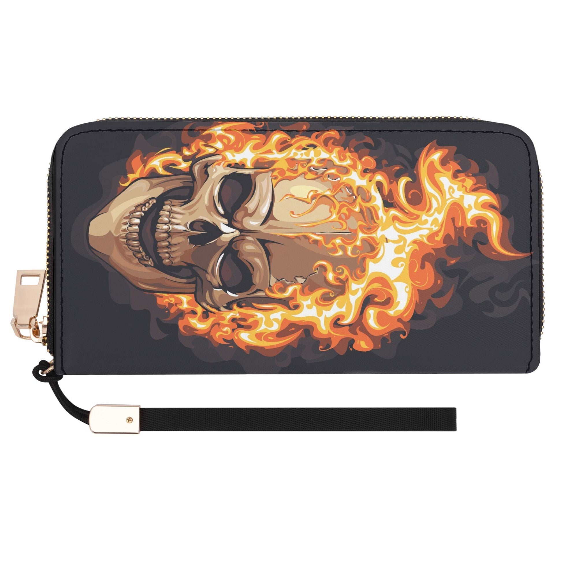 Horror long wallet, flame skull long wallet, goth crossbody bag, gothic skull bag with shoulder strap, flame skull tote bag flame skull bag