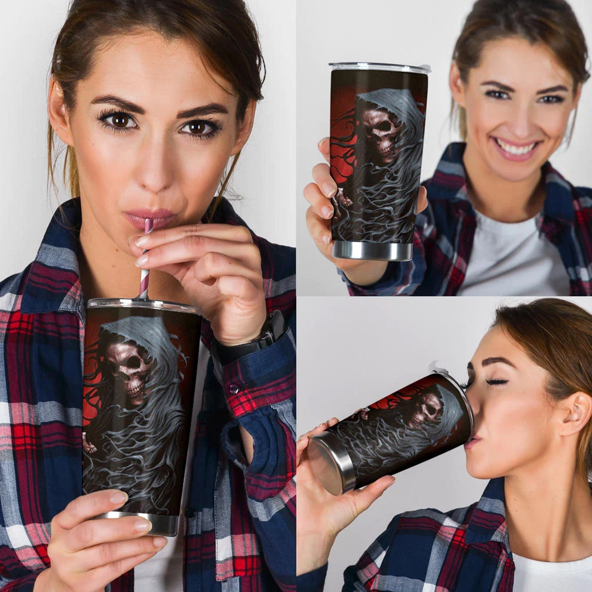 Horror mug, flame skull tumblr, skeleton freezer Mug, rose skull tumblr, flaming skull cup, gothic skull freezer Mug, floral skull tumbler