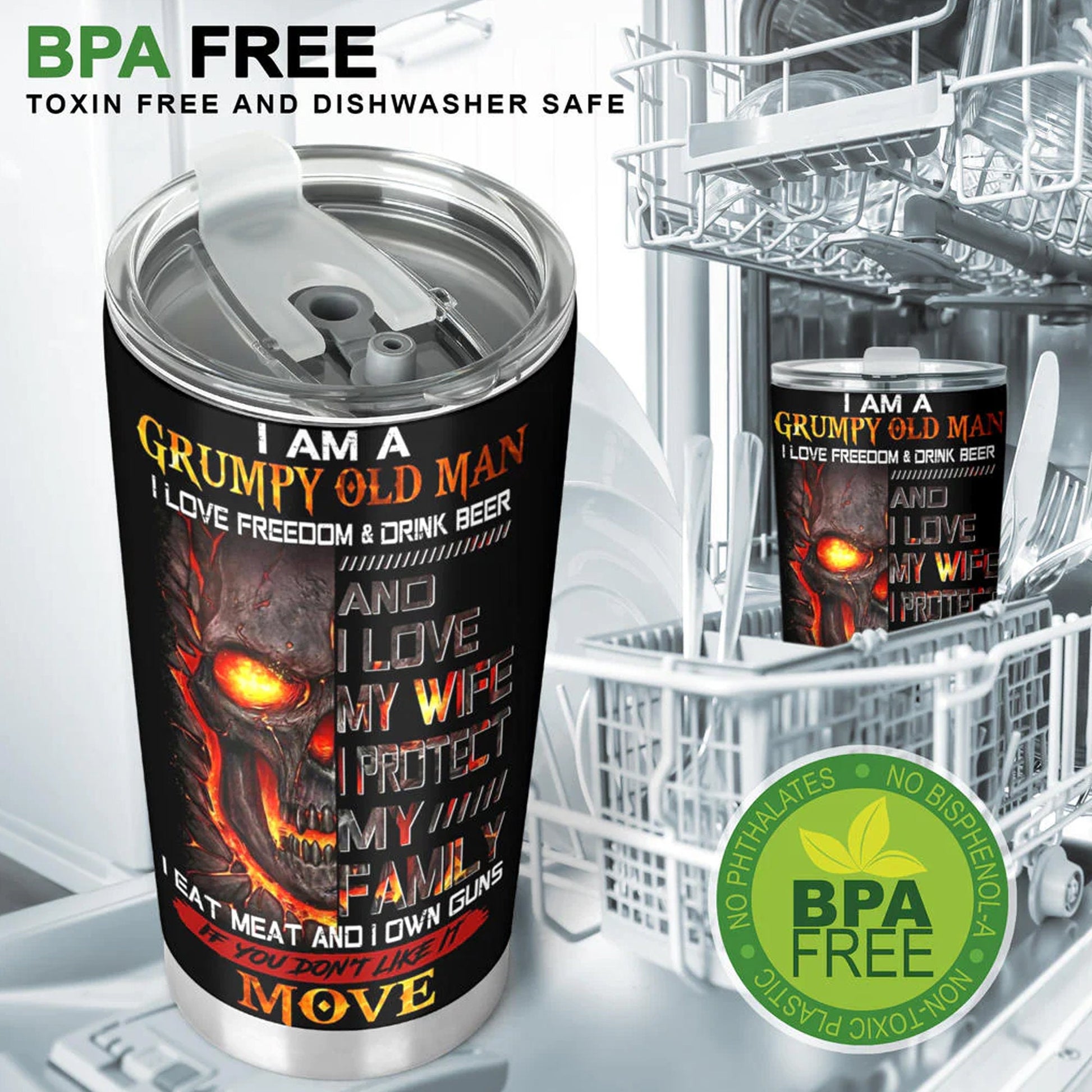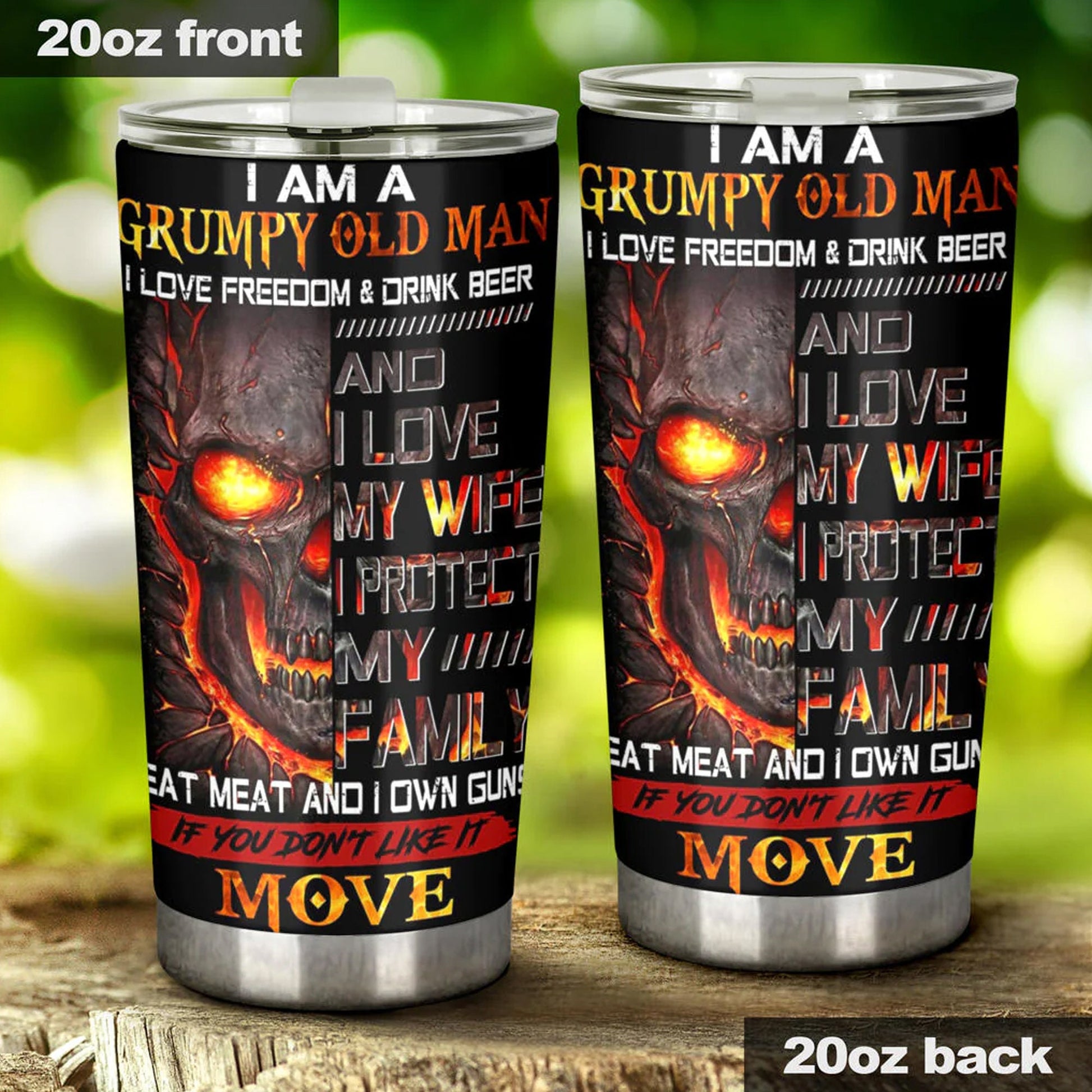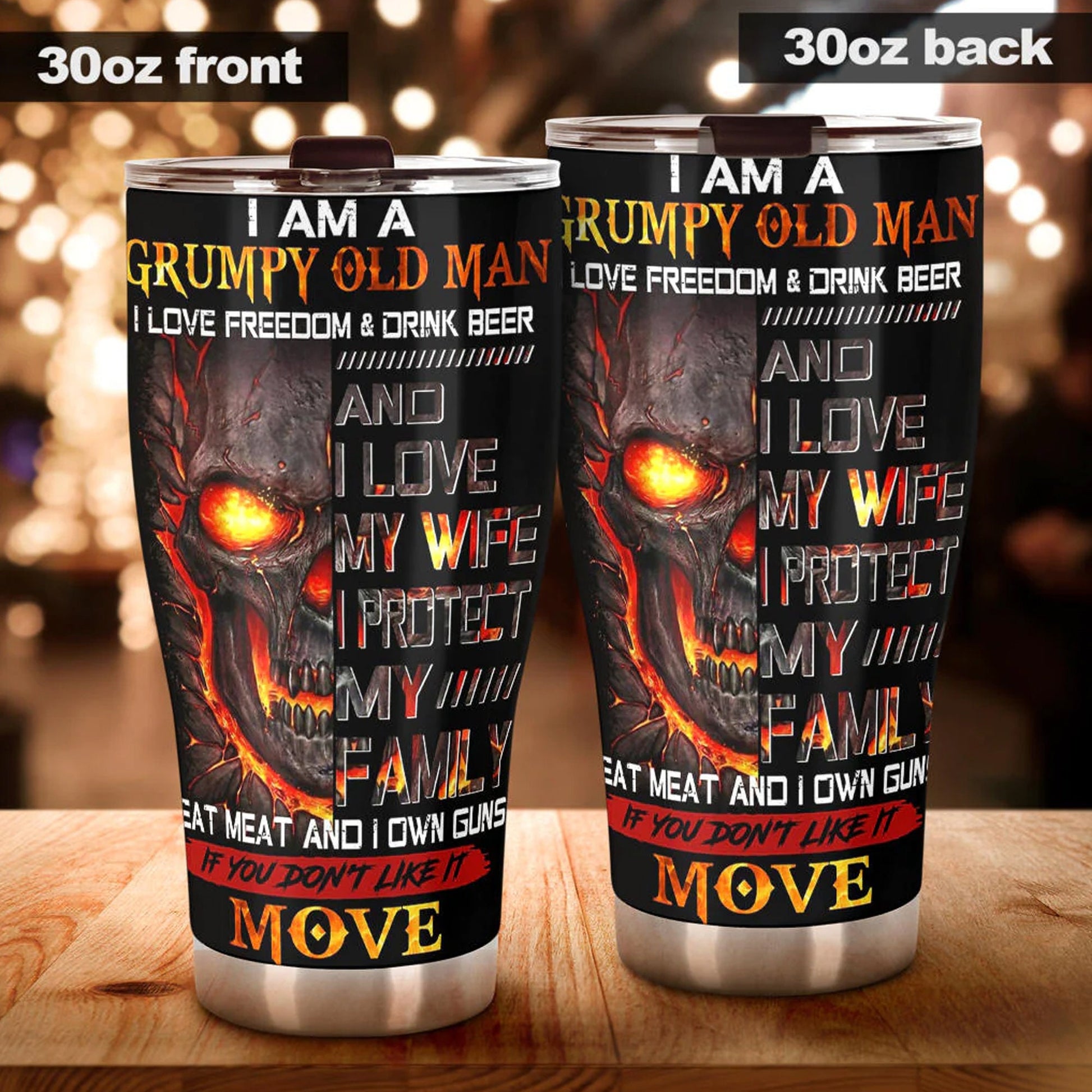 I am a grumpy old man skull tumbler cup, gothic flaming skull tumbler mug Halloween mug grim reaper horror skeleton punisher tumbler cup mug