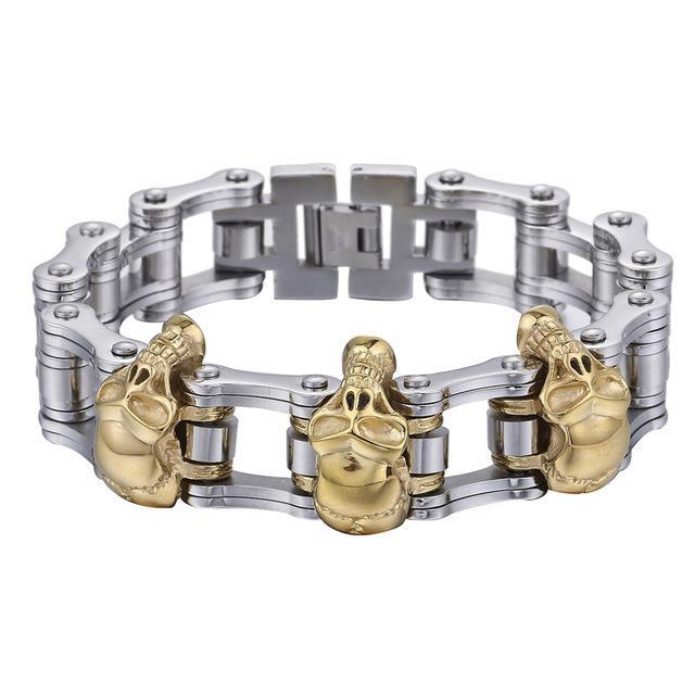 Men's Bracelet 316L Stainless Steel Biker Wristband Skulls Motorcycle Link Chain Punk Jewelry