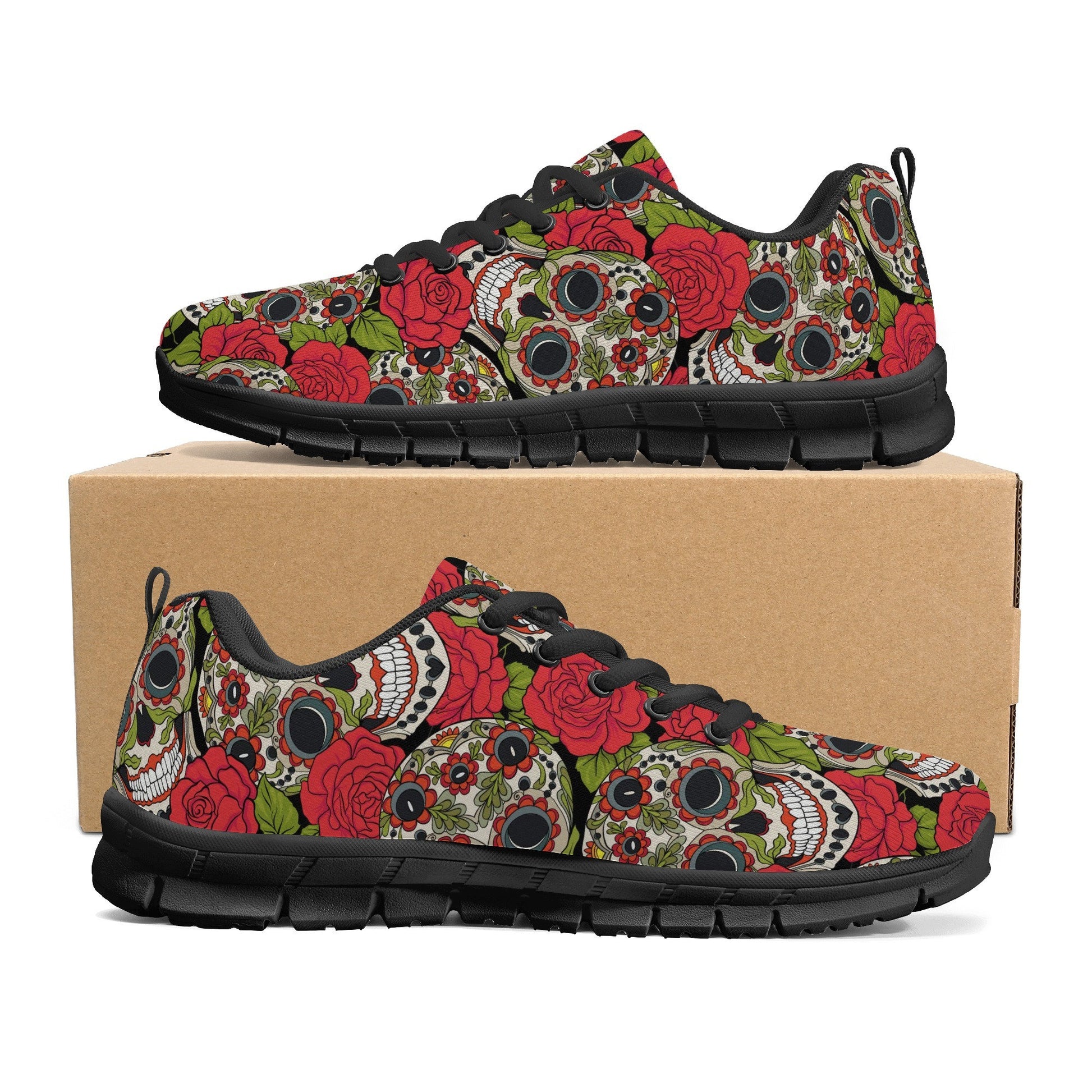 Mexico running sneakers, floral sugar skull athletic running shoes, calaveras skull shoes, mexico breathable sneakers, sugar skull shoes