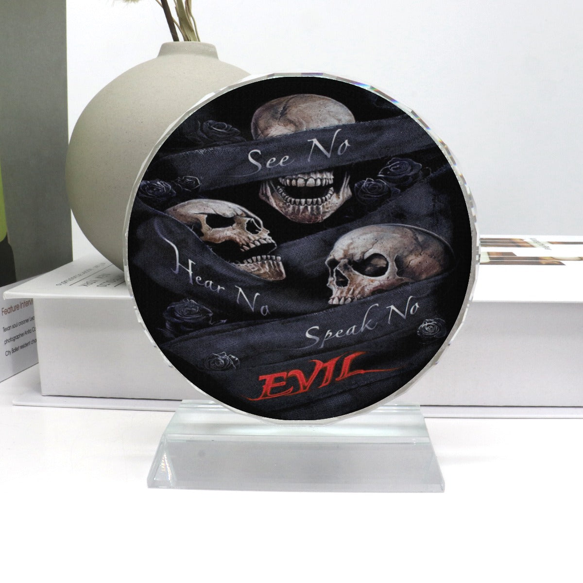 No see no hear no speak evils Crystal Pendulum, Gothic skull skeleton Halloween table decoration, Gothic Flaming skull Crystal Pendulum, Skull table decoration, Grim reaper table lamp
