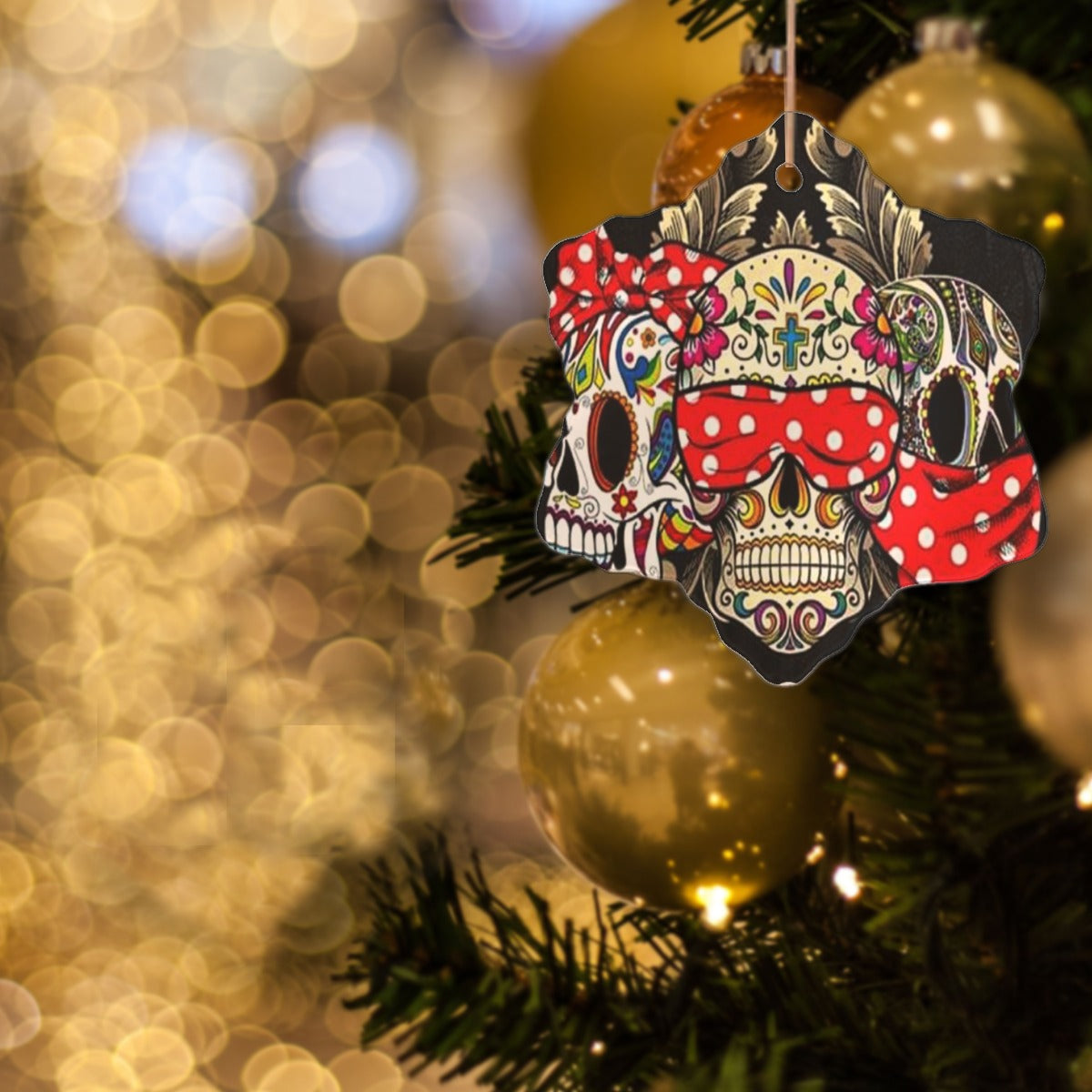 No see no hear no speak sugar skull Christmas Tree Ceramic Pendant