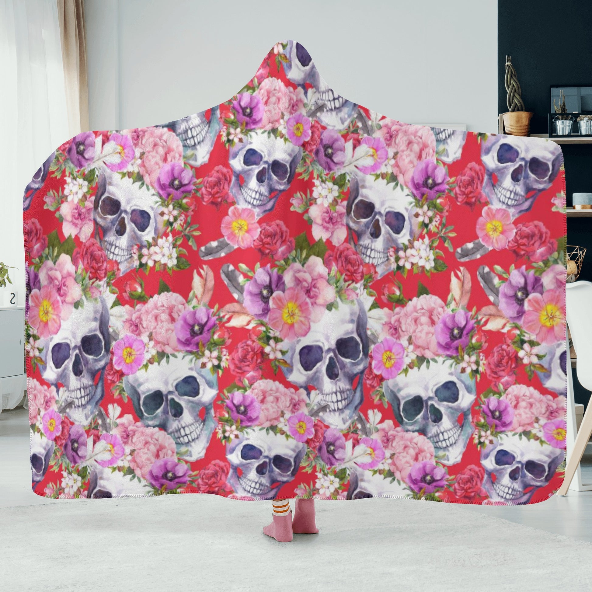 Rose floral skull skeleton halloween Hooded Blanket