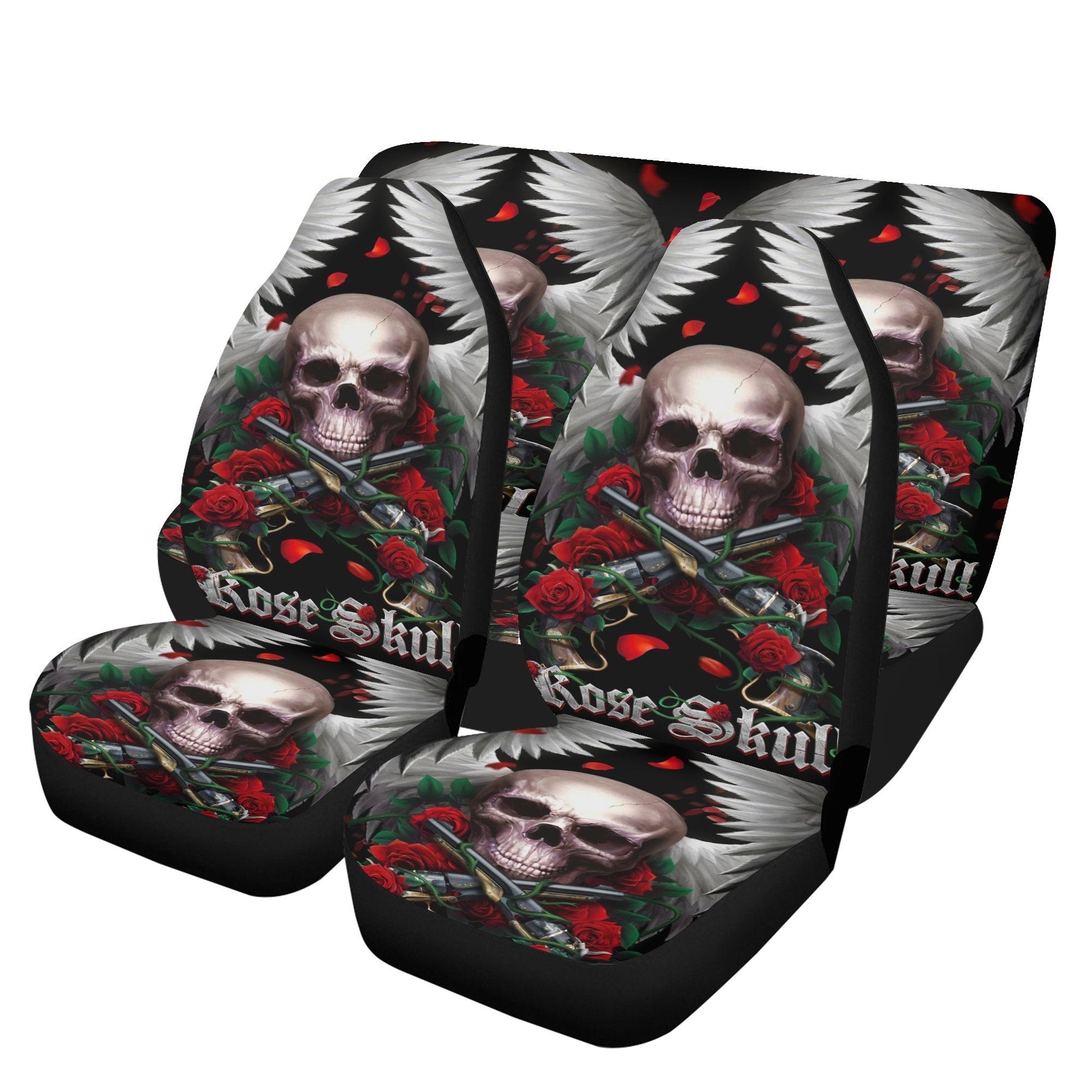 Rose Skull Seat Cover for car, skull rug for car, Skeleton skull car seat cover mat, Halloween skull evil car seat cover skull mat for car
