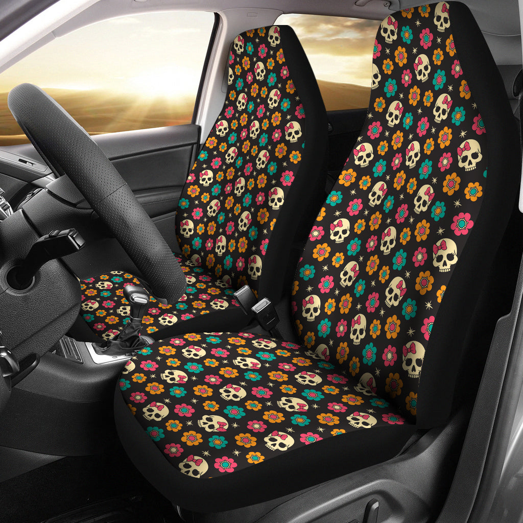Set 2 pcs sugar skull day of the dead skull car seat covers